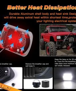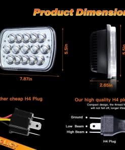 Faros LED de 45W 5×7 / 7×6 con patrón de haz perfecto con conector estándar H4. Conéctelo y juegue con vehículos con toma H4 estándar. Los faros LED H6054 pueden hacer que vea claramente la carretera por delante en cualquier condición: los faros LED 5×7 emiten un patrón de línea de corte perfectamente definido, proporcionan una visión más brillante y amplia, no cegarán los ojos de los demás. Los faros LED 7×6 pueden iluminar una distancia más lejana en la oscuridad, evitando obstáculos y peatones por adelantado, garantizando la seguridad. Amplia Aplicación – Los faros LED 5×7 se adaptan al 95% de los vehículos, son adecuados para cualquier camión / semi / furgoneta / pickup / sedán / vagón / suv / autobús / automóvil, etc. con faros H6054 / H6054LL / 6054 / H5054 / H6052 / 6052 / 6053 / 69822: como para je-ep xj / yj / mj. apto para toyota tacoma / pickup. para Chevrolet s10 blazer / s10 pickup / express. para Ford Bronco / E-series. para INTERNATIONAL 9100/9200/9400/9900 / Harvester 9200i / 9400i. para KENWORTH T300 T330. para Peterbilt 365/367. Freightliner FL50/60/70/80/112/MT35/45/55. para GMC Jimmy / CK Pickup. Diseño de válvula respiratoria Si hay humedad o agua dentro del faro LED 5×7, retire la tapa de ventilación respiratoria y encienda los faros, la humedad o el agua desaparecerán en poco tiempo, después de que los faros LED 7×6 puedan funcionar normalmente y brillar de nuevo como antes. La válvula de respiración también ayuda a equilibrar la presión de aire y temperatura de los faros LED 5×7 con externos, para disipar el calor y la humedad que pueden alargar la vida útil. Servicio: 1 año de servicio al cliente sincero, cualquier pregunta, contáctenos sin dudarlo. Responderemos dentro de las 12 horas en días laborables, ¡estamos encantados de resolver cualquier problema que haya tenido! Los faros LED de 5×7 / 7×6 pulgadas súper brillantes ofrecen iluminación confiable y visibilidad clara, el paquete incluye 2 piezas de faros LED de 5×7 / 7×6 pulgadas.