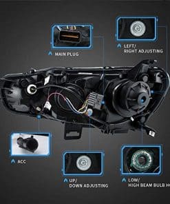 NOTA: Habrá un error AFS en el EVO X pero los faros funcionan correctamente. Se recomienda encarecidamente la instalación profesional. Compatible con los siguientes vehículos: Mitsubishi Lancer & EVO X 2008-2016 DE Sedan 2008-2017 ES/GTS 2008-2015 Evolution 2011-2016 GT 2014 Limited Edition Sedan 2009-2015 Ralliart 2009-2017 SE 2016-2017 SEL Sedan Especificaciones Tamaño de bombilla: D2S/D2H (NO incluido) Resistente al agua: IP67. Certificación: DOT. Voltaje de funcionamiento: 12V 55W. Funciones: Running, señal de giro y doble haz con ojos de demonio. Color de la carcasa: Negro. Color de la lente: Negro. Material de la carcasa: Plástico ABS. Material de la lente: PC. Montaje OE atornillado: Tiene las mismas conexiones y cables que los coches originales, reemplazo directo de la unidad de stock. Diseñado para proporcionar una instalación sin problemas, se instala fácilmente. Paquete incluido Viene con juego completo de faros delanteros (lado del conductor y del pasajero) Fabricante original VLAND es el fabricante líder especializado en el diseño y fabricación de accesorios para automóviles modificados. Productos principales l Luces LED modificadas l Paragolpes l Parrilla Estamos comprometidos con el diseño único 100% original Alta calidad Precio competitivo