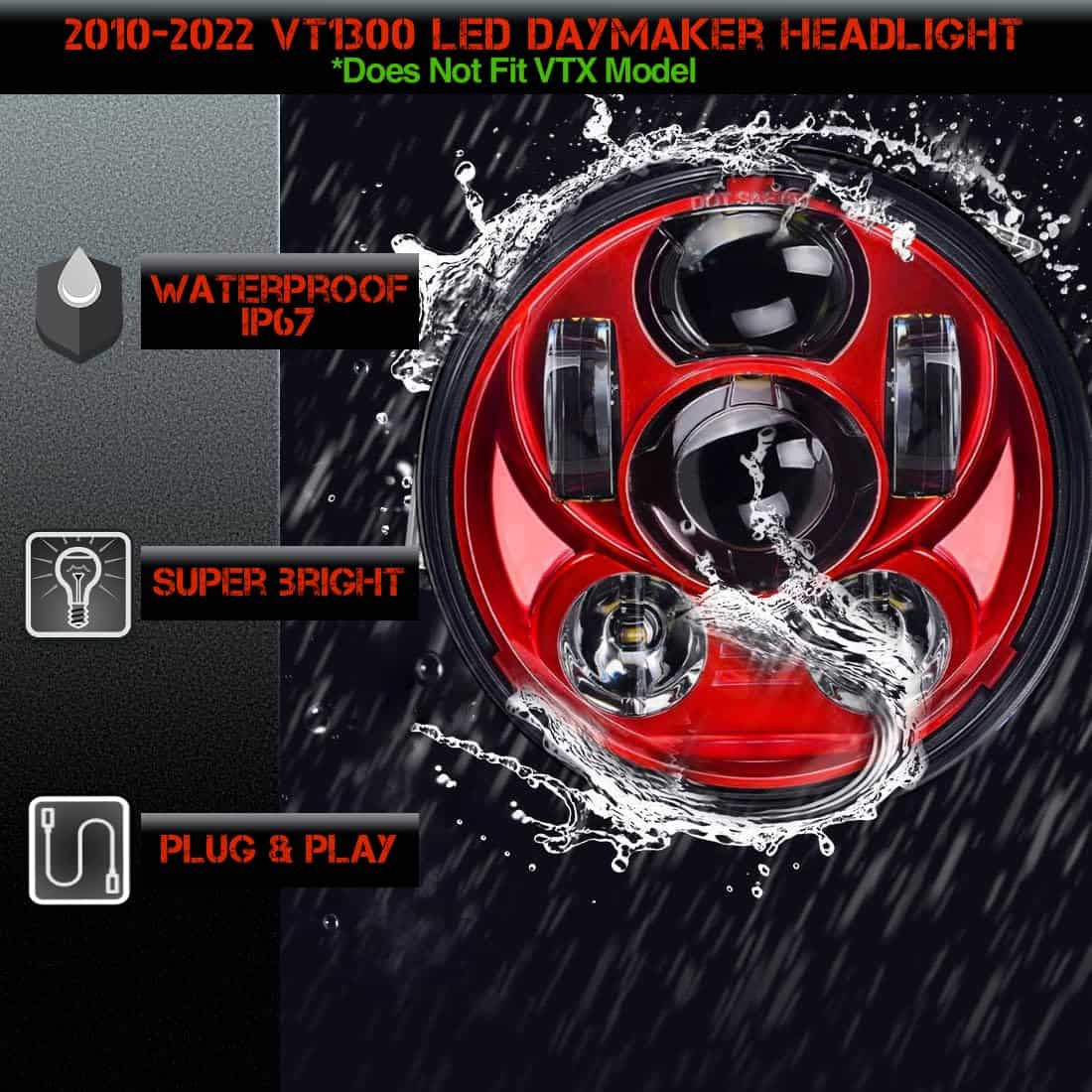 El faro LED patentado pendiente de 18/139,980 de SLK-Customs es completamente ajustable con plug & play. El Daymaker SLK se instala en el soporte OEM para un ajuste OEM. Este es un faro proyector LED DOT APPROVED de 5 3/4 pulgadas en color rojo. El faro SLK está hecho a medida para adaptarse a los modelos Honda 2010-2025 VT1300 Honda Fury, Sabre, Interstate y Stateline. Reemplaza el faro OEM de tu Honda VT1300, Honda Fury, Sabre, Interstate y Stateline sin necesidad de modificaciones. Se conecta directamente a tus soportes OEM y todo el hardware está incluido para la instalación. Con el faro LED Honda VT1300 de SLK-Customs, obtendrás la visibilidad y seguridad que necesitas en la carretera y serás visto más fácilmente. Con el enchufe H4 de 3 patas estándar de la industria, nuestro faro encajará directamente en el montaje de fábrica y utilizará el enchufe OEM de fábrica para la instalación. Este accesorio Honda VT1300, Honda Fury, Sabre, Interstate y Stateline no requiere cableado ni modificaciones. Este faro LED Honda VT1300 está aprobado por DOT, luz alta 40w/3800Lm, luz baja 30w/2700Lm. Este kit se instala en menos de 20 minutos. Fácil instalación con solo 4 pasos: quitar la cubierta, sacar el faro OEM, instalar el nuevo Daymaker en el soporte OEM, volver a instalar la cubierta. Ahora vuela como un águila por la carretera abierta. Este es uno de los accesorios más fáciles de instalar. Compatible con: 2010-2025 Honda VT1300, Honda Fury, Honda Sabre, Honda Interstate y Honda Stateline. El kit incluye: faro LED rojo de 5.75 pulgadas completamente ajustable. NO ES COMPATIBLE CON Honda VTX 2002-2009.