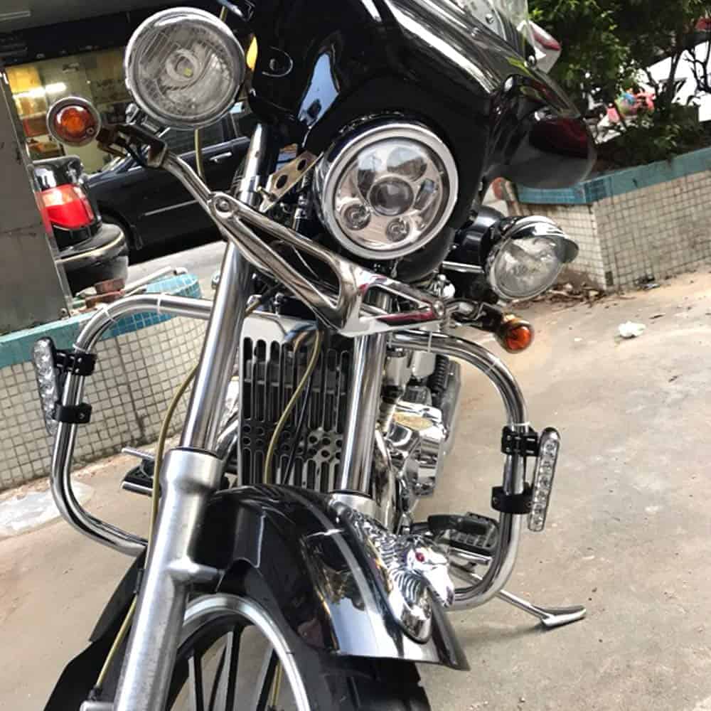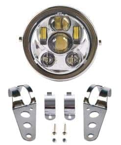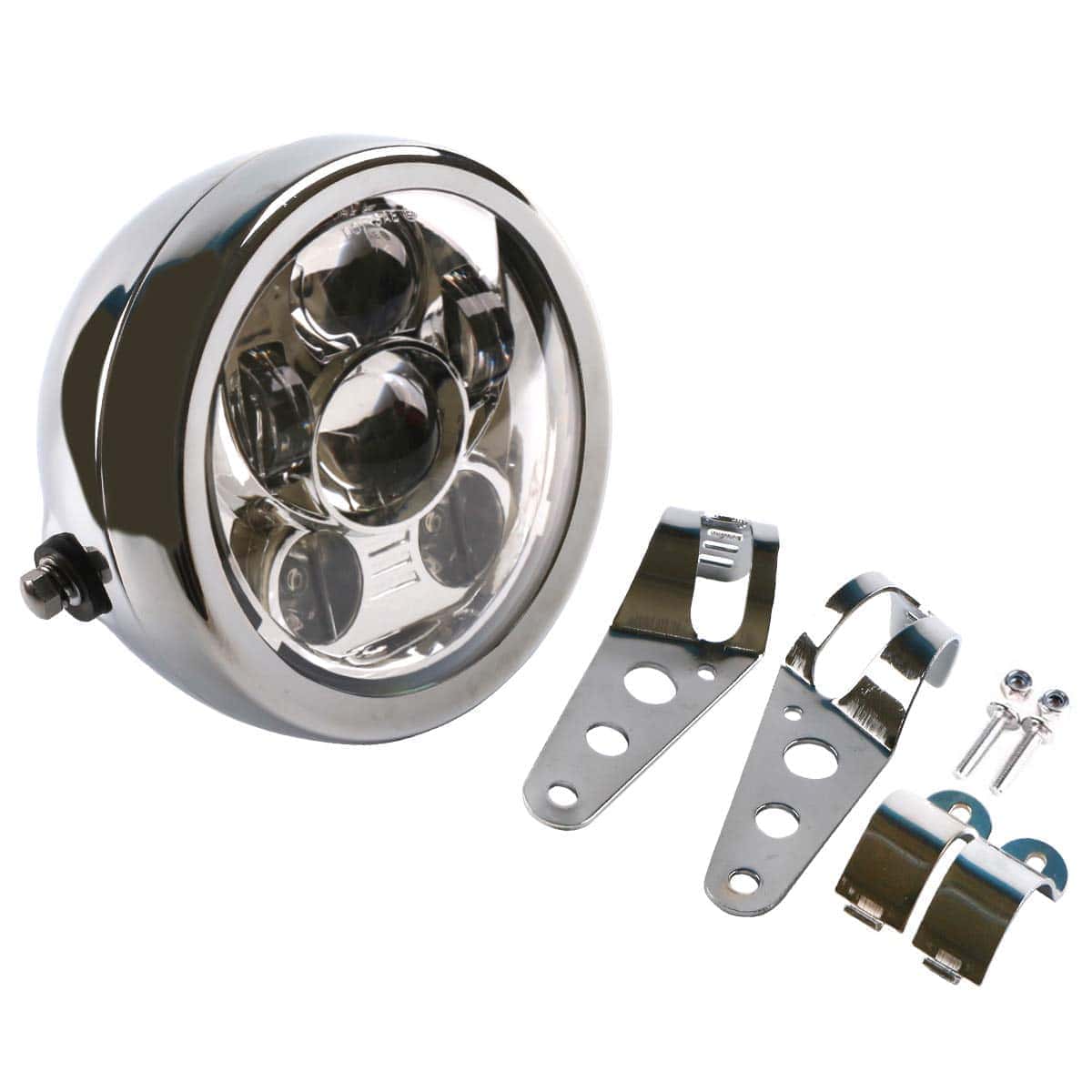 Faros LED sellados aprobados por DOT SEA de 5.75 pulgadas con carcasa para faro de motocicleta, legales en carretera, se ajustan a la mayoría de los amortiguadores de 1.26-1.6 pulgadas de motocicletas (Si sus tubos de horquilla son más grandes de 1.6 pulgadas, contáctenos para el soporte de montaje más grande);. Hecho de chip LED de alta luminosidad, mucho más brillante que los faros halógenos originales, ilumina bien la carretera, hace que su vehículo sea único y elegante, garantiza la seguridad de los conductores en condiciones oscuras;. Instalación fácil, se adapta directamente al conector estándar de 3 pines H4, plug and play en la mayoría de los modelos, algunos modelos pueden requerir modificaciones menores. 45W (4000lm) Luz Alta 30W (2700lm) Luz Baja, Soporte de Lámpara de Aleación de Aluminio Duradero para una disipación más rápida del calor, prolonga la vida útil por encima de 50,000 horas;. Compatible con la mayoría de las motocicletas, Shadow 500/750/ace 750/Aero(phantom) 750/spirit 1100/vlx 600/Rebel 500, Suzuki, Kawasaki Vulcan 900 custom/800 bobber, Cafe Racer, Choppers, Cruiser, Metric Bikes, Beginner Show Bike, Micargi Bicycles y otras aplicaciones personalizadas, etc;. El paquete incluye: 1 pc Faro LED de 5 3/4″ + carcasa de faro + soporte de montaje para carcasa de faro + instrucciones de instalación, para obtener más ayuda no dude en contactarnos.