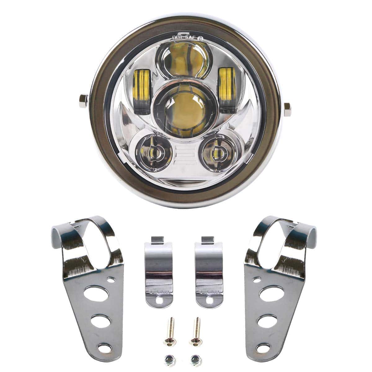 Faros LED sellados aprobados por DOT SEA de 5.75 pulgadas con carcasa para faro de motocicleta, legales en carretera, se ajustan a la mayoría de los amortiguadores de 1.26-1.6 pulgadas de motocicletas (Si sus tubos de horquilla son más grandes de 1.6 pulgadas, contáctenos para el soporte de montaje más grande);.