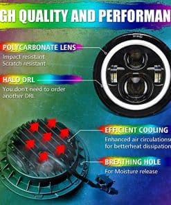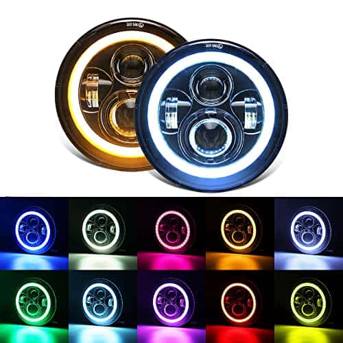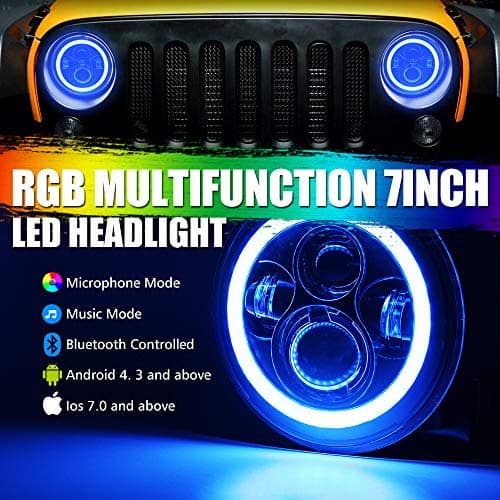 Faros LED de 7 pulgadas con Halo RGB DRL y Ojos de ángel