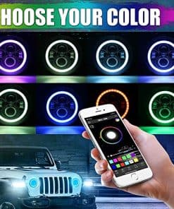 1. Faros LED RGB multifunción de ángel Jeep JK Ajuste de brillo y selección de modo de color de 22 y control de la aplicación móvil y compatible con iPhone y Android y función de temporización y función de destello y control automático.