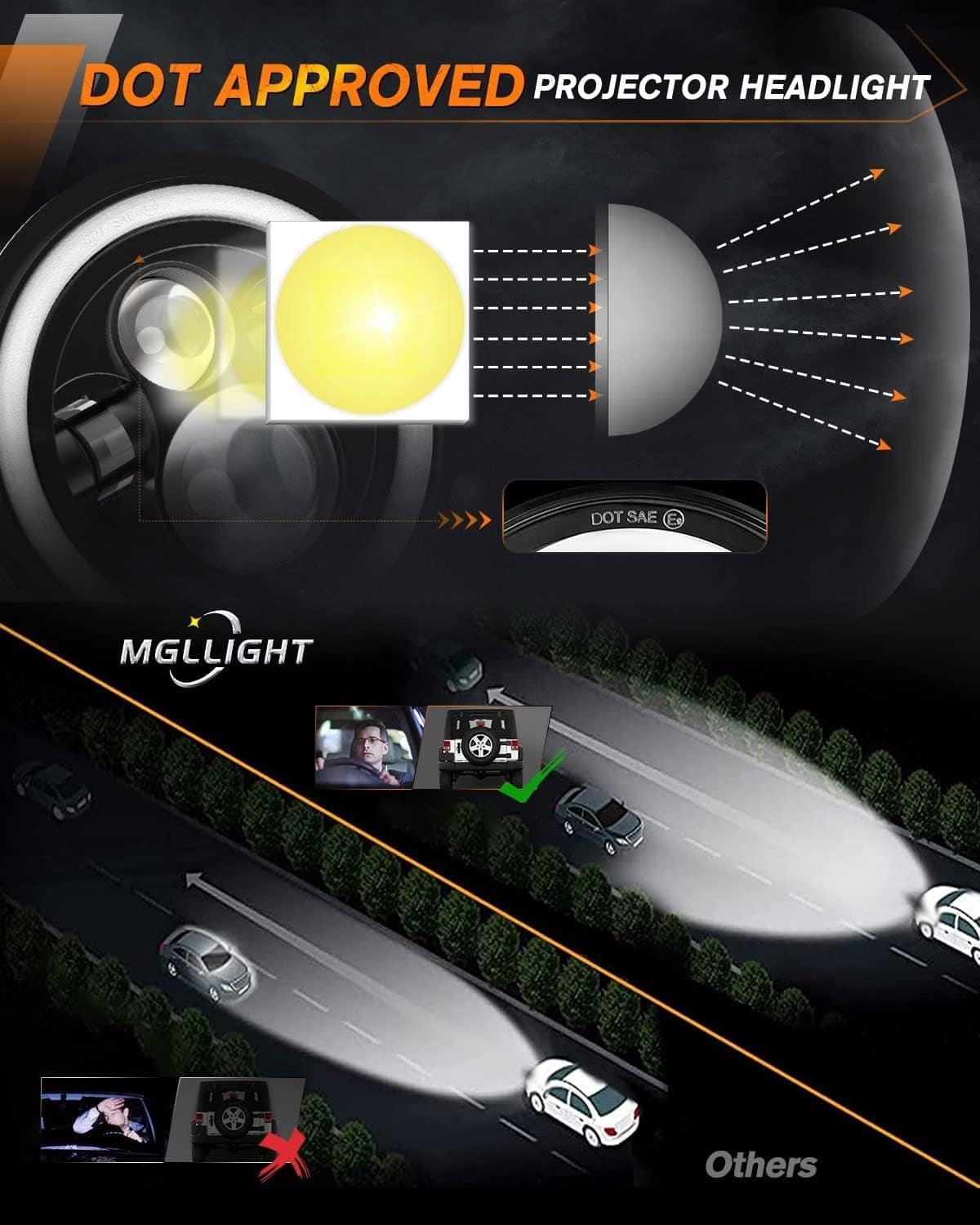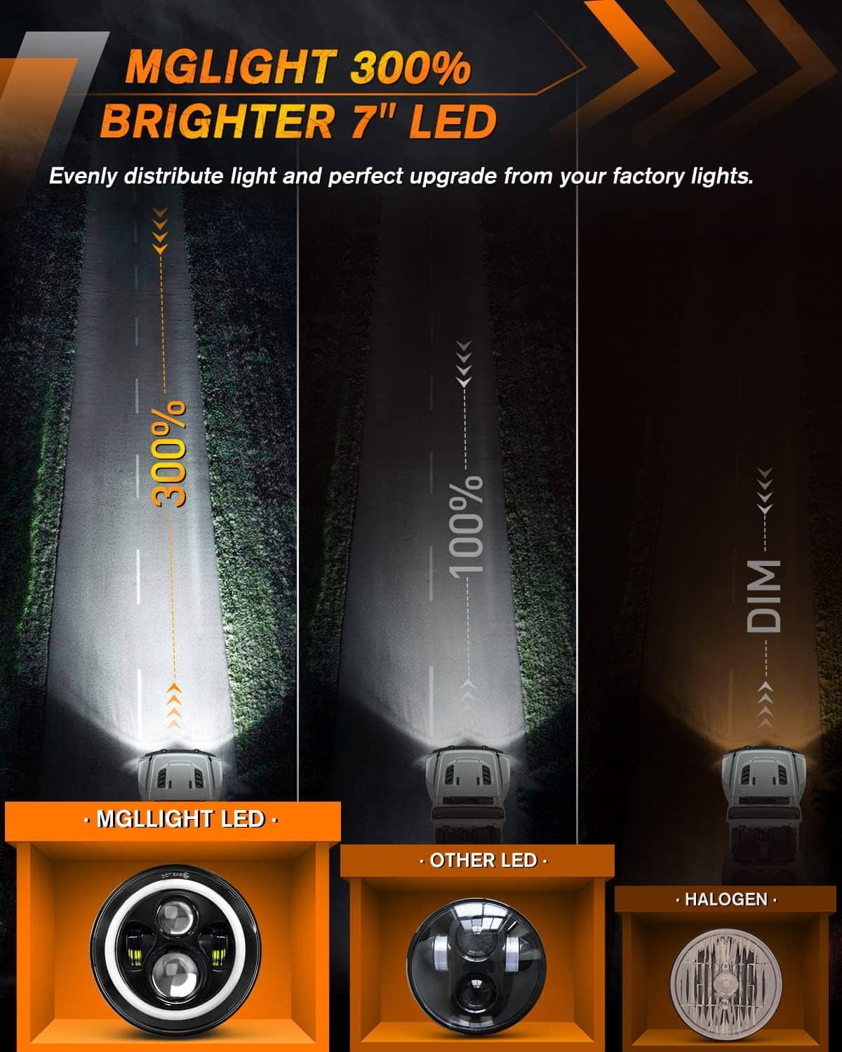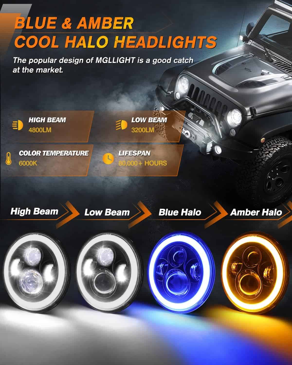 Faros LED de 7 pulgadas MGLLIGHT con Anillo Azul Halo Señal