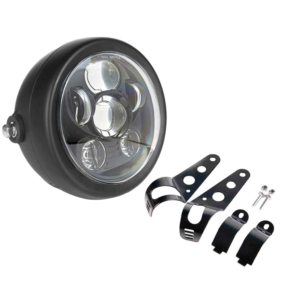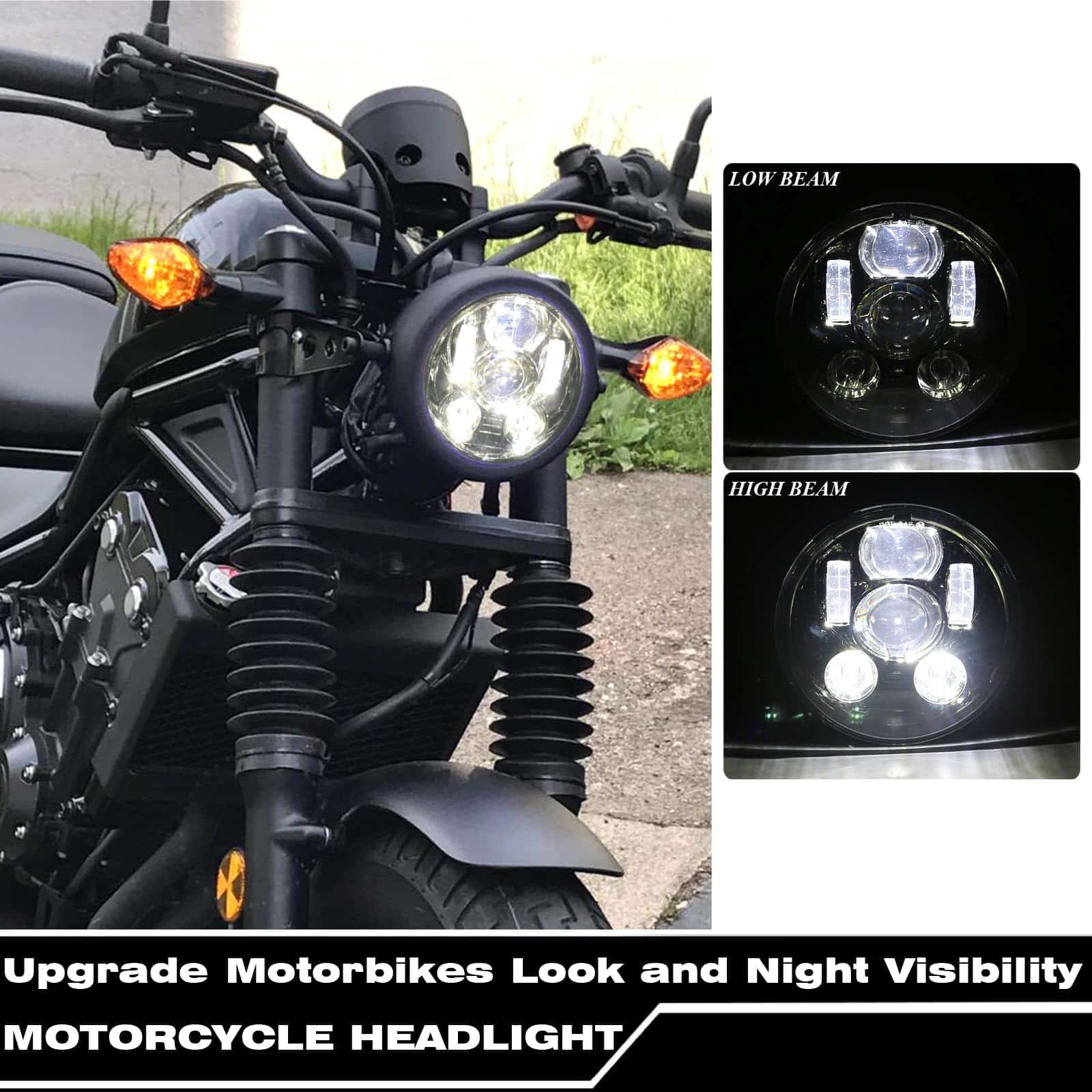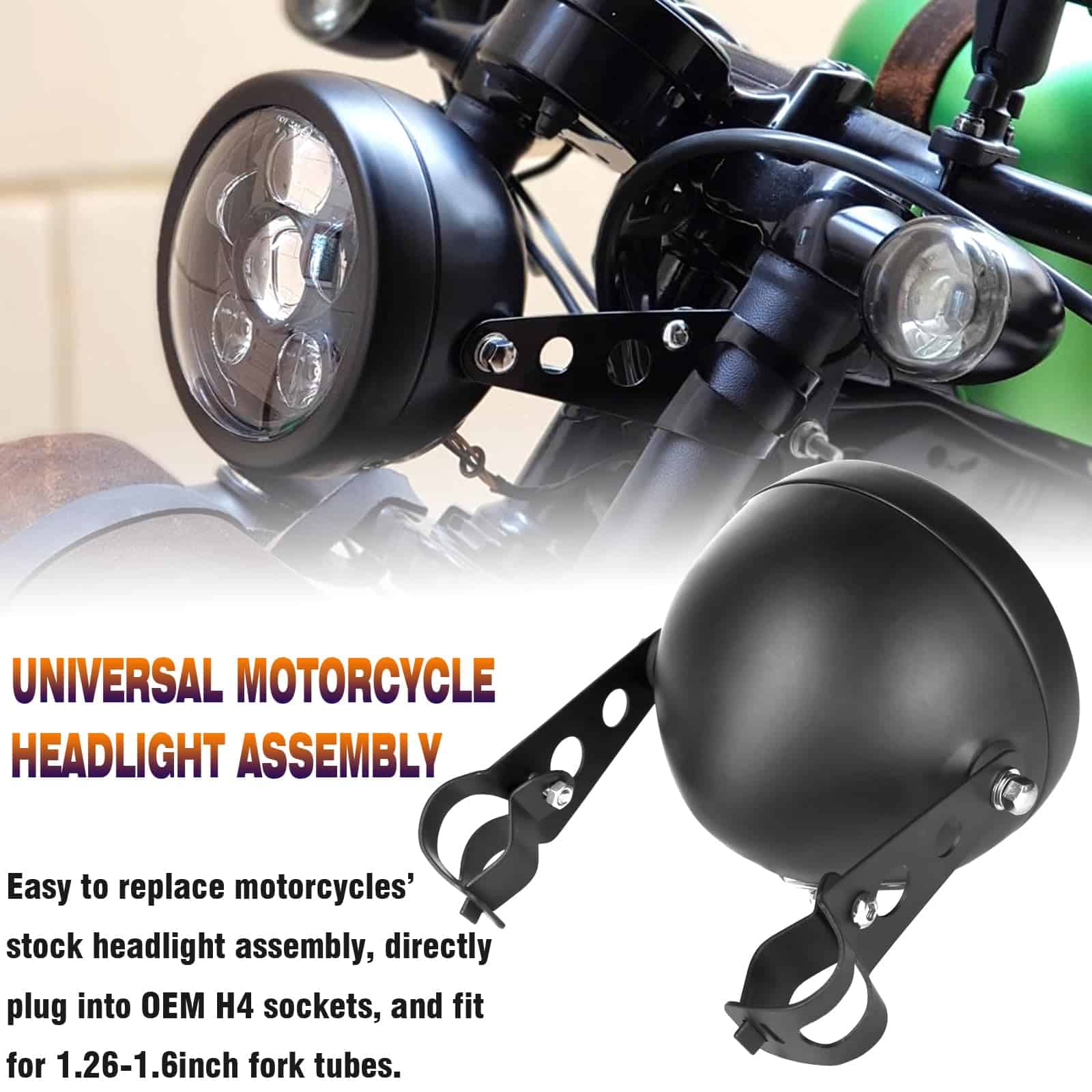1. DOT SEA aprobado Faro LED Sellado de 5.75 pulgadas para motocicletas con carcasa de faro, legal en la carretera, se adapta a la mayoría de los amortiguadores de 1.26-1.6 pulgadas de diámetro de motocicletas (Si sus Tubos de Horquilla son más grandes que 1.6 pulgadas, por favor contáctenos para el soporte de montaje más grande);