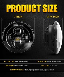 3. EMC Incorporado: Este faro de motocicleta de 7 pulgadas está hecho de una duradera carcasa de aluminio negra, a prueba de golpes e impermeable (IP67). Nueva función incorporada de canbus y EMC utilizada para evitar el parpadeo e interferir con la radio de su moto.
