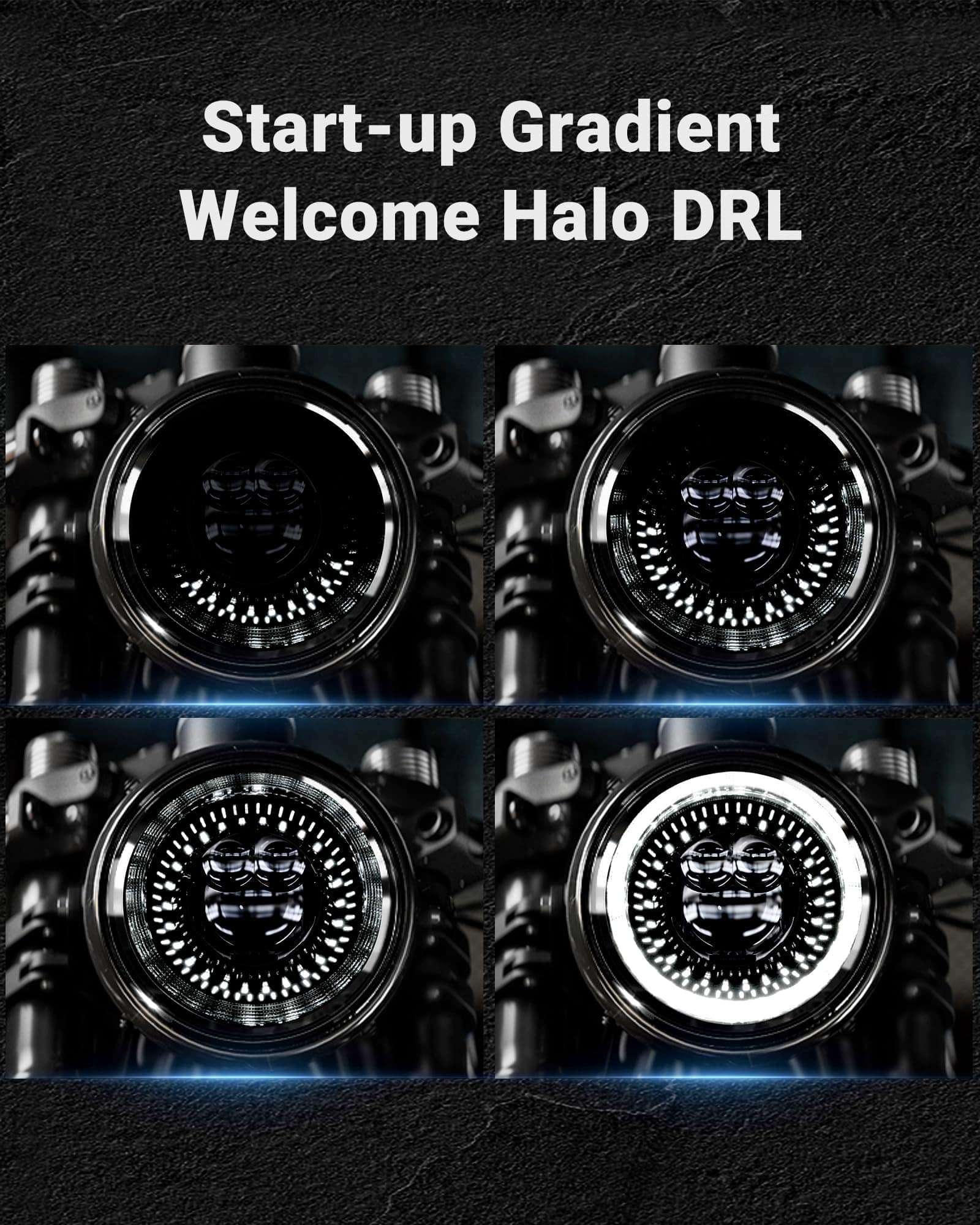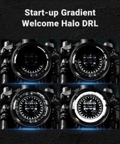 Faros LED para motocicleta de 7 pulgadas con 8000lm/4000lm de alta/baja intensidad de haz; mejor patrón de luz del mercado sin puntos ciegos o áreas oscuras; construcción resistente y duradera; aspecto moderno con elegante inicio de halo; instalación plug-and-play; IP67 impermeable.