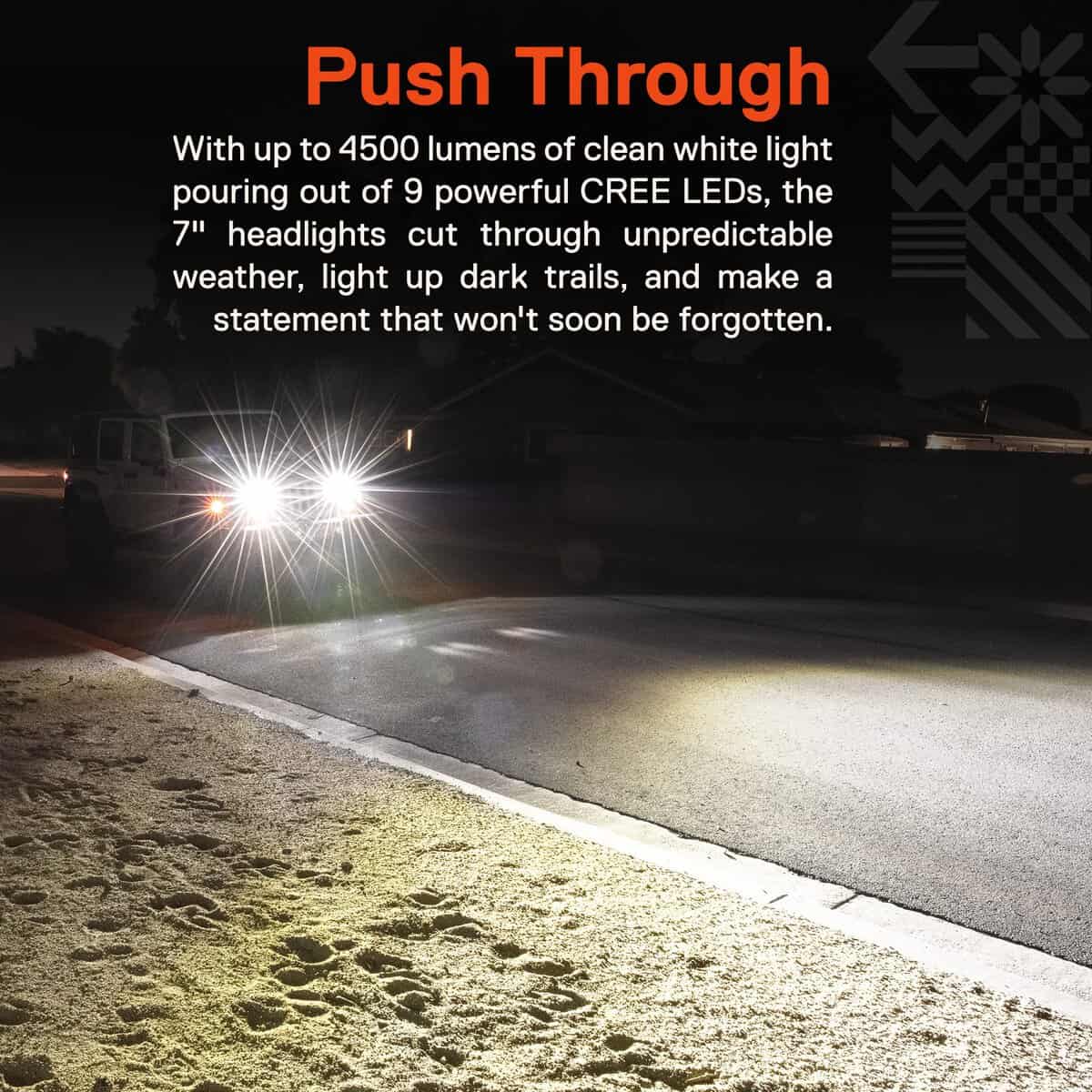Aventura nunca se vio tan bien. Un Jeep es inconfundible, en la carretera destaca y en el sendero domina. Los faros de tu Jeep deberían reflejar ese mismo estilo y actitud únicos. Con un diseño agresivo negro sobre negro y repleto de LEDs CREE de alta intensidad, estos faros atraviesan la oscuridad como un cuchillo caliente a través de la mantequilla, y se ven geniales haciéndolo. Construido para resistir. Un Jeep es más que solo otro vehículo, es una expectativa. Una expectativa de capacidad, resistencia y rendimiento inigualables. No subestimes a tu Jeep con faros LED débiles. Nuestros faros de 7″ son el compañero de sendero definitivo para tu máquina de trail definitiva. Listos para tu próxima aventura, donde sea que sea. Mejorar el rendimiento en carretera y off-road de tu Jeep no necesita ser difícil. Nuestros faros LED son un reemplazo exacto para tus luces de fábrica, y con un chip CAN bus integrado y un adaptador de cableado incluido, no necesitas molestias cortando o empalmado de cables. Un intercambio rápido y estás listo para volver a la carretera, o sendero, o montaña.