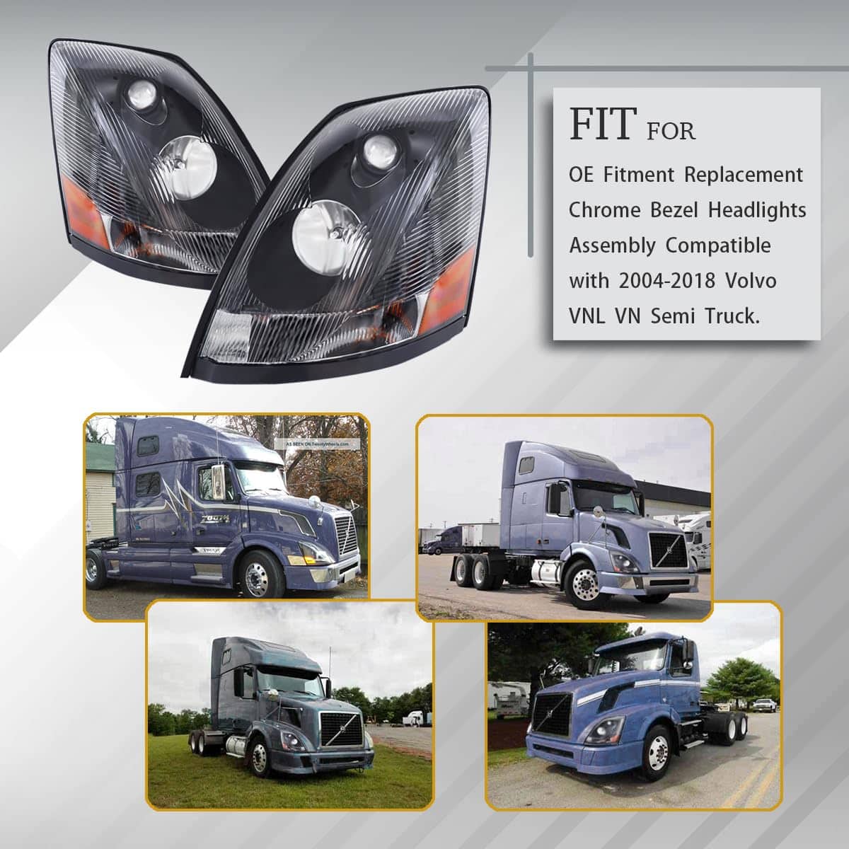 Faros Negros para Volvo VNL 2004-2014, Compatible con Lado