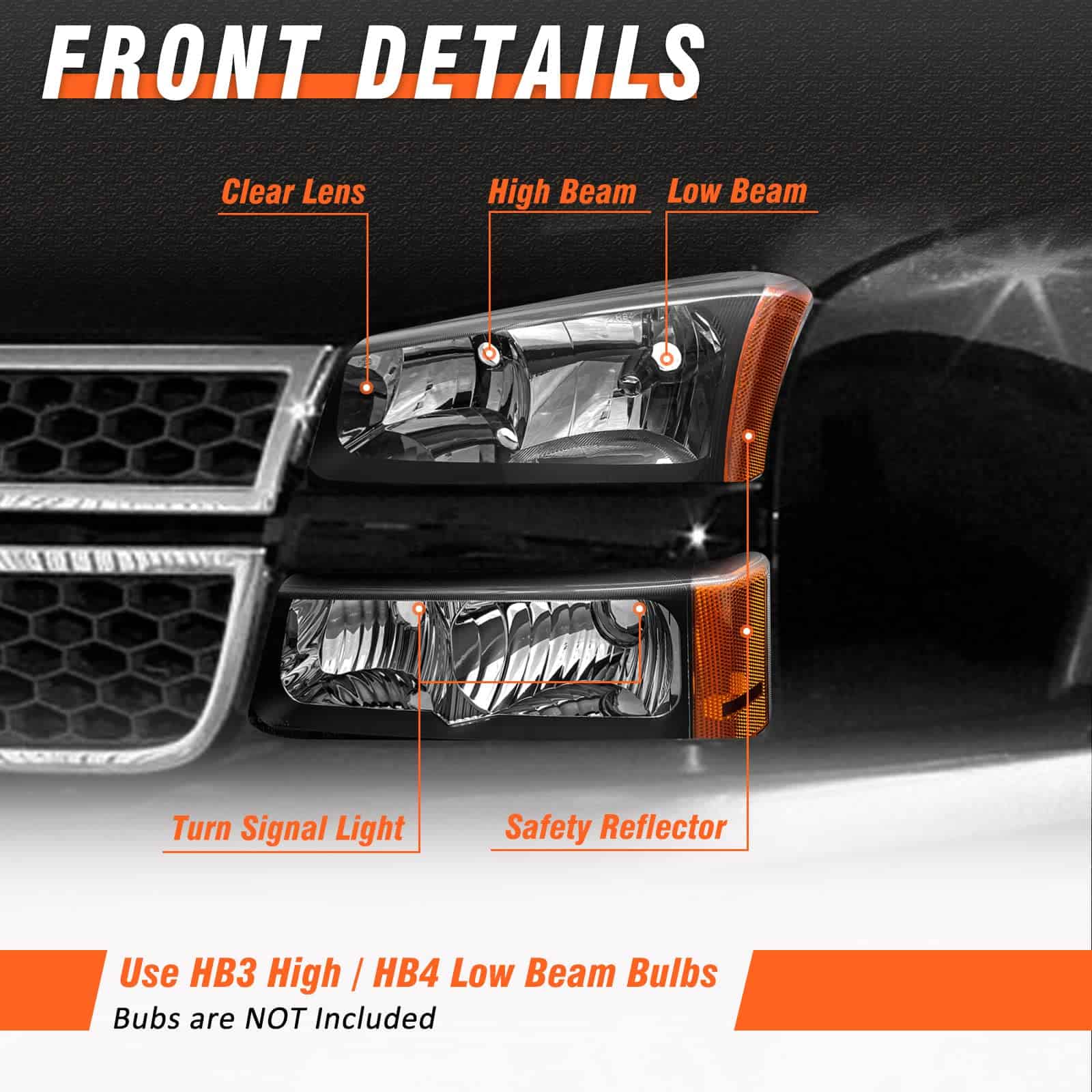 1. Compatibilidad con el vehículo: conjunto de faros compatible con Chevrolet Sliverado 2003-2004-2005-2006, la bombilla no está incluida. 2. Beneficios del material: utilizando el último material plástico, con una mejor transmisión de luz y dureza. 3. Sellado impermeable: utilizamos adhesivo PUR para reducir en gran medida la posibilidad de entrada de agua en el producto, asegurando una vida útil más larga. 4. Fácil de instalar: Enchufar y listo, instalación fácil y rápida. ¡No se requieren técnicas de instalación complicadas ni perforaciones! Viene en pares con lados del conductor y del pasajero. 5. Excelente servicio postventa: Nuestros productos tienen una garantía de 12 meses. Y, si tiene algún problema después de comprar nuestros productos, nuestro equipo de servicio postventa lo ayudará a resolverlos a tiempo.