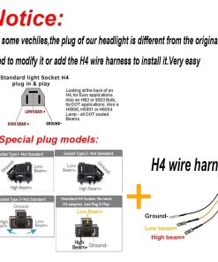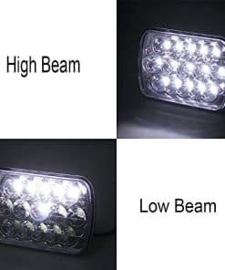 Faros LED con potencia de 45W (15 piezas de LED de 3W de alta intensidad), temperatura de color de 6500K, voltaje de trabajo de DC 10V a 30V, resistencia al agua IP67, patrón de haz alto/bajo, plug H4 de fábrica con función de alto/bajo, más de 50,000 horas de vida útil, 3800 lúmenes en haz alto por unidad y 1600 lúmenes en haz bajo por unidad. Fácil instalación con plug H4. Compatible con la mayoría de vehículos con faros sellados. Números de intercambio: H4656, H4651, 4651, 4652, H4652, H4666, H6545, H6054, H6054LL, 6054, H5054, H6014, H6052, 6052, 6053, 69822. Se recomienda la instalación profesional.