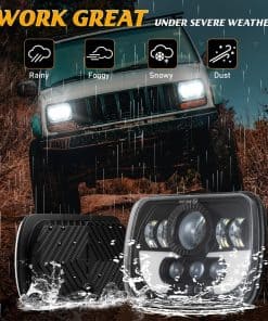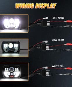 Especificaciones Chips;130W/PC; (Alta beam: 60W, Baja beam 60W ,Angel Eye: 10W); Patrón en forma de árbol (Alta beam & Baja beam & Luz Diurna); Tasa de impermeabilidad: IP67; Temperatura de Color: 5000K-6000K; Material de la Lente: PMMA; Vida Útil: Hasta 50,000 Horas; Garantía: 1 año. Paquete incluye 2 faros rectangulares 5″ x 7″ 6×7 pulgadas Compatible Con Jeep Wrangler Cherokee XJ Trucks 4X4 Repuesto de Faro H6054 H5054 H6054LL 69822 6052 6053. Aplicación amplia H6054 H6054LL 6054 H5054 H6014 H6052 6052 6053 69822. Los faros pueden adaptarte a hasta el 95% de los vehículos, incluidos sedanes, SUVs ligeros. Compatible con Jeep Wrangler JK LJ y camionetas de 86-95, motocicletas, 89 chevy k5 blazer, gmc safari 93, dodge w250, corvette c4 y vehículos todo terreno. Calidad Alta La lente está hecha de policarbonato de alta calidad, y no hay necesidad de preocuparse por la fricción de piedras o ramas. Carcasa trasera de aleación de aluminio de alta calidad 6063, suficientemente fuerte y buena disipación térmica, nuestros faros h6054 tienen una vida útil de hasta 80,000 horas, una eficiencia energética excelente. La tecnología consume menos electricidad que los faros tradicionales, convirtiéndose en una opción amigable con el medio ambiente. Diseño Único Estilo faro 6052 6054 H5054 H6054 Cuatro modos de iluminación (alta beam/ baja beam/ DRL blanco/ señal de giro ámbar) para satisfacer sus diferentes necesidades de iluminación en diferentes condiciones ambientales. Faro 5×7 aprobado por la DOT, legal y seguro en la carretera. Proporciona una salida de luz máxima que los faros originales. El camino recto súper afilado garantiza en gran medida la seguridad del conductor en el tráfico. Impermeabilidad IP68 Los faros 5×7 6×7 son lo suficientemente impermeables para brindarte una vista de conducción brillante y clara y poder identificar rápidamente posibles obstáculos. Además, la estructura hecha de materiales de alta calidad, con bordes de sellado excelentes, puede tener un rendimiento extremadamente excelente y estable incluso en invierno frío o en caminos montañosos embarrados o polvorientos, para proporcionar una mejor visibilidad y seguridad. Resistente y duradero para reducir reemplazos frecuentes.