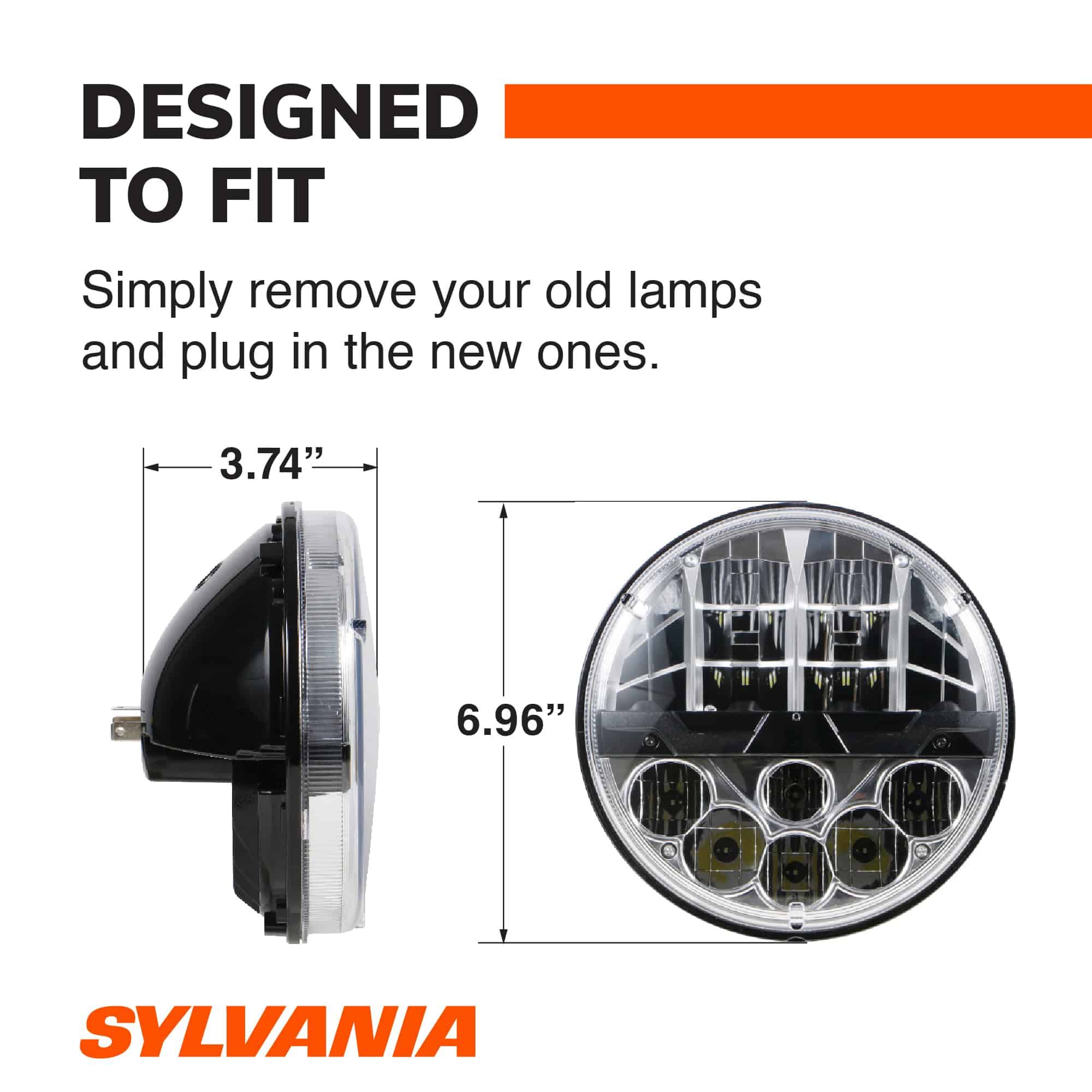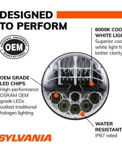 Sylvania LED Sealed Beam Headlight – H6024SL.BX – Compatible con H6024, H6014 y H6015 – Faro de Automóvil Brillante, Duradero y Eficiente en Energía – 1 Lámpara por Caja. Este faro sellado con LED de Sylvania ofrece una luz blanca fresca de 6000K, lo que mejora la visibilidad y la seguridad en la carretera. Diseñados para una larga vida útil, estos bombillos de faros reducen el consumo de energía mientras proporcionan una iluminación superior. Con una clasificación IP67 para resistencia al agua, estos faros de automóvil son duraderos y pueden soportar condiciones climáticas adversas. Equipados con chips LED de grado OEM de OSRAM, estos faros brillantes ofrecen un alto rendimiento y confiabilidad. Con más de 100 años de experiencia en iluminación, confía en Sylvania para ver más allá de la carretera.