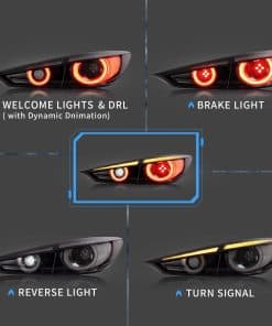 Ajuste directo OEM: Compatible con Maz-da Axela 2014 2015 2016 2018. Diseñado para ser un reemplazo exacto de sus lámparas traseras de fábrica sin necesidad de modificaciones en el vehículo para hacer el trabajo correctamente. Las luces traseras LED con animación dinámica le dan a su vehículo un toque de elegancia de alta gama, con una secuencia coreografiada de luz en movimiento que lo hace destacar del resto. La pantalla LED personalizada añade un estilo moderno y distintivo. Asegúrese de sellar la almohadilla impermeable en la parte trasera de las luces para evitar la humedad durante la instalación. En caso de cualquier problema con el producto, contáctenos y proporcione pruebas de video e imágenes para una solución rápida.