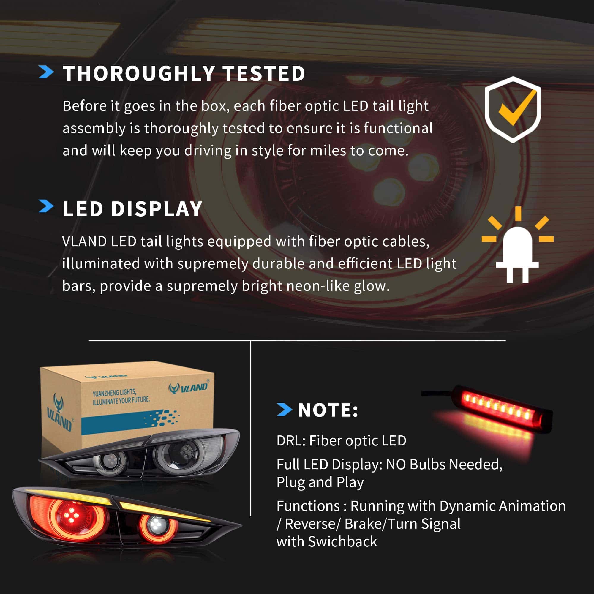 Faros traseros LED VLAND compatibles con Maz-da 3 Axela