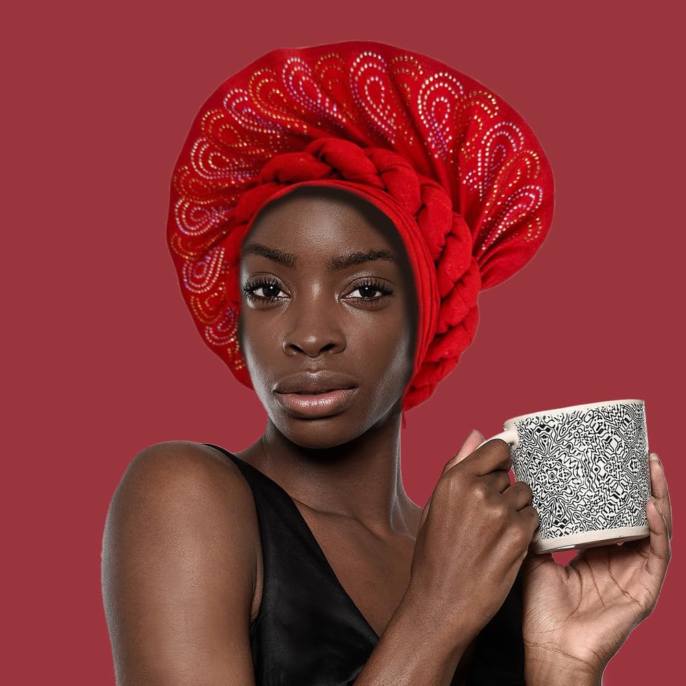 Fashion Asoke Gele Headties Nigerian para -Rojo