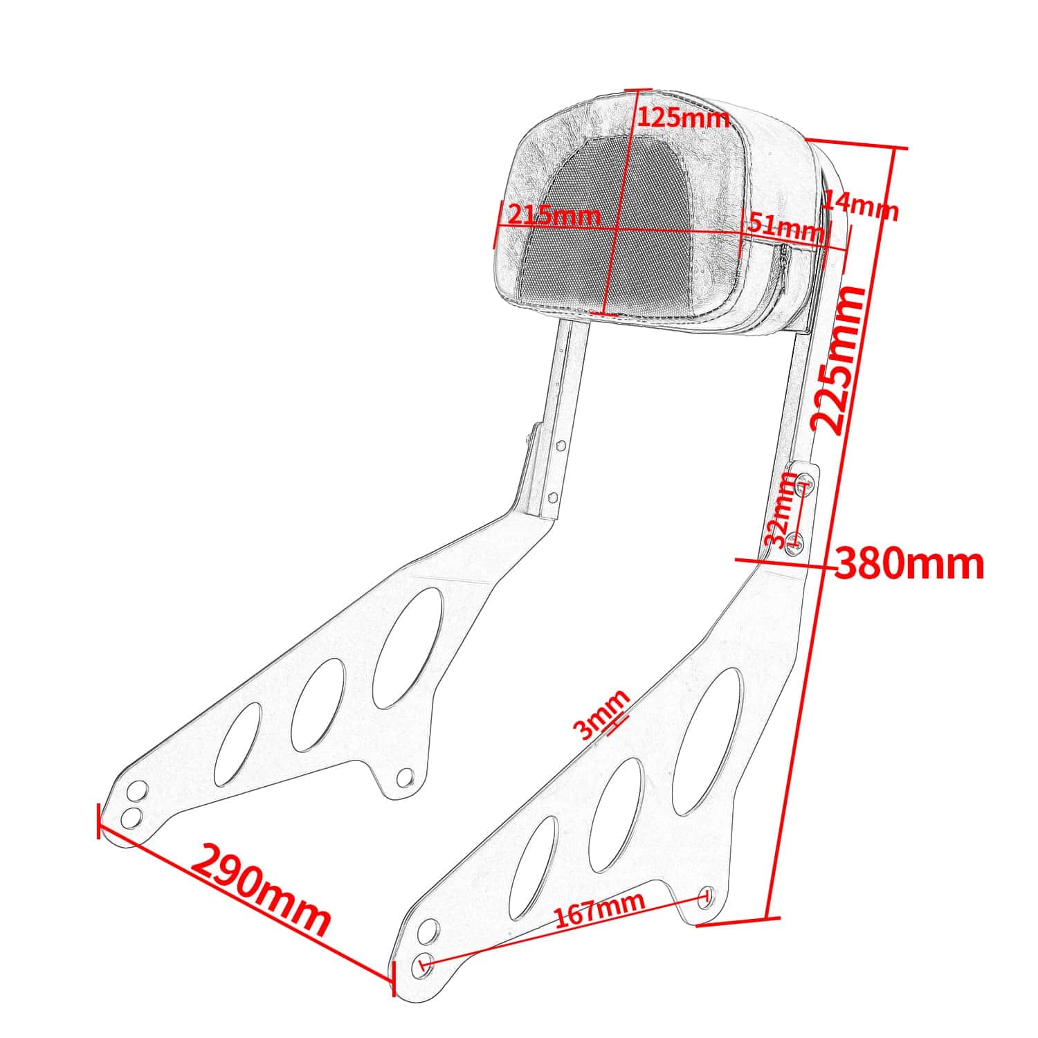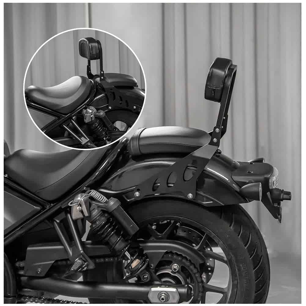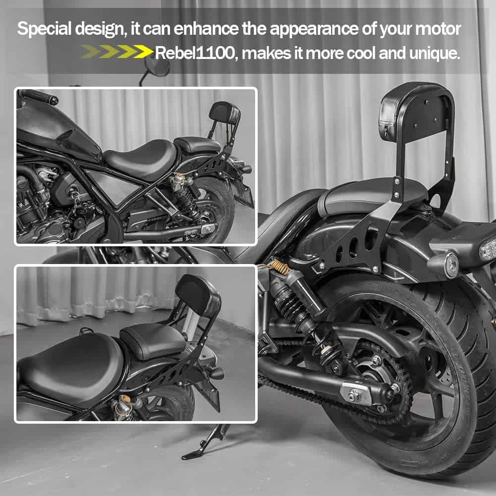 NOTA: No compare nuestro Kit de Almohadilla de Asiento con los fabricados de forma barata que se venden a precios muy bajos. La calidad está en niveles totalmente diferentes. Condición: Postventa 100% nuevo. Material: Construido de acero al carbono de alta calidad + Cuero PU, resistente al óxido, resistente a la corrosión, resistente a la abrasión, robusto y duradero en uso. Tipo: Piezas de Accesorios de Motocicletas para CMX1100 CM1100 21 22. Color: Negro, lo que ves es lo que obtendrás. Paquete incluye: 1 juego de Almohadilla de Respaldo Trasero para Pasajero. Viene con todos los tornillos de montaje. Compatibilidad: Para Rebel CMX 1100 2021-2022. Para Rebel CM 1100 2021-2022. Función: Suficientemente resistente y ajuste muy apretado, no te preocupes por el problema de la vibración. El cojín en espuma recubierto con una capa de cuero repelente al agua, duradero en uso. El recubrimiento en polvo negro resiste la corrosión y mantiene la placa en buen estado. Fácil de acoplar, tiene la capacidad de bloquearse simplemente apretando unos tornillos. Es desmontable en un segundo cuando no está en uso. Por lo tanto, no ocupará espacio. Función: Diseño especial, puede mejorar la apariencia de tu motor Rebel1100, haciéndolo más genial y único. Hay dos formas de instalación. No importa si eres conductor o pasajero, la almohadilla de cojín suave proporciona un gran apoyo lumbar y te mantiene cómodo en las largas travesías por carretera. Tu mejor elección para viajes de larga distancia. Servicio por nosotros: – Cualquier pregunta, por favor contáctenos, responderemos dentro de 24 horas y resolveremos el problema por usted. ¡Disfruta de la verdadera experiencia de compra sin preocupaciones en nuestra tienda!