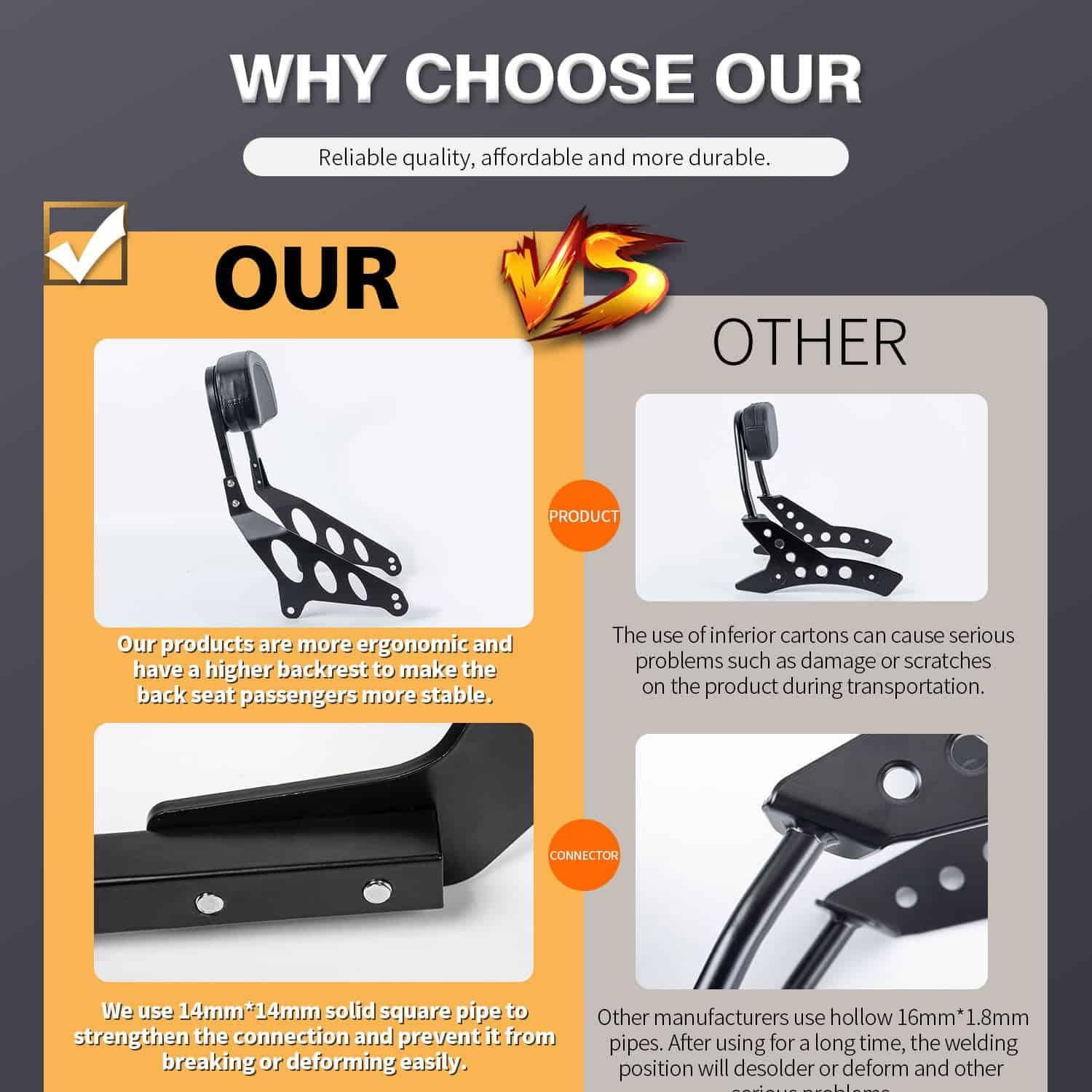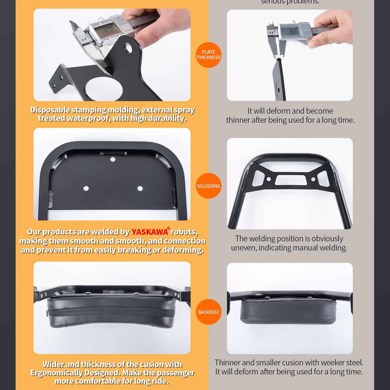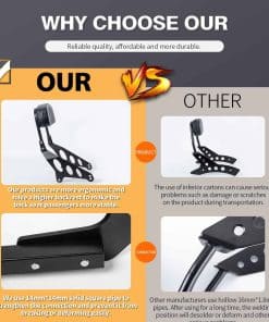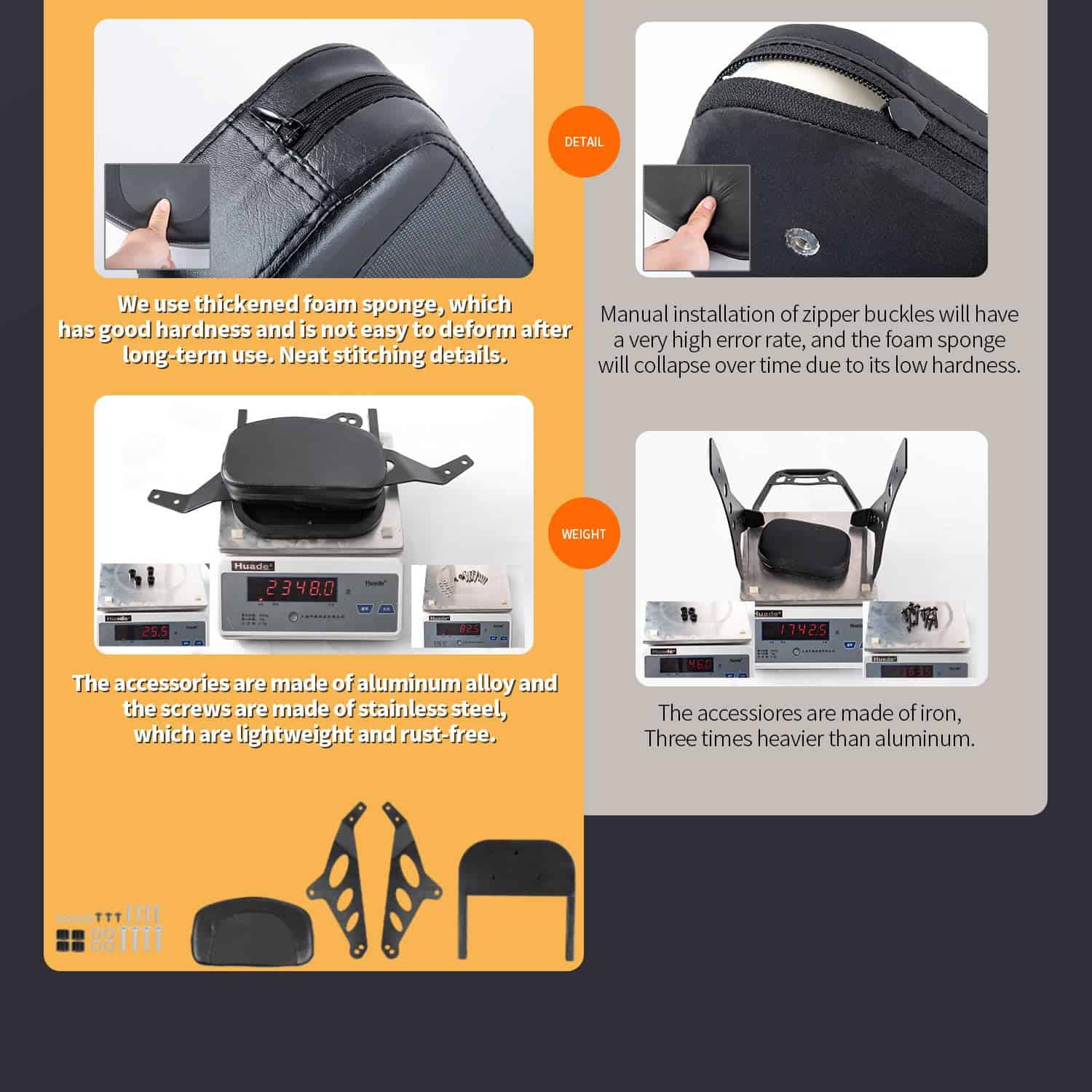 NOTA: No compare nuestro Kit de Almohadilla de Asiento con los fabricados de forma barata que se venden a precios muy bajos. La calidad está en niveles totalmente diferentes. Condición: Postventa 100% nuevo. Material: Construido de acero al carbono de alta calidad + Cuero PU, resistente al óxido, resistente a la corrosión, resistente a la abrasión, robusto y duradero en uso. Tipo: Piezas de Accesorios de Motocicletas para CMX1100 CM1100 21 22. Color: Negro, lo que ves es lo que obtendrás. Paquete incluye: 1 juego de Almohadilla de Respaldo Trasero para Pasajero. Viene con todos los tornillos de montaje. Compatibilidad: Para Rebel CMX 1100 2021-2022. Para Rebel CM 1100 2021-2022. Función: Suficientemente resistente y ajuste muy apretado, no te preocupes por el problema de la vibración. El cojín en espuma recubierto con una capa de cuero repelente al agua, duradero en uso. El recubrimiento en polvo negro resiste la corrosión y mantiene la placa en buen estado. Fácil de acoplar, tiene la capacidad de bloquearse simplemente apretando unos tornillos. Es desmontable en un segundo cuando no está en uso. Por lo tanto, no ocupará espacio. Función: Diseño especial, puede mejorar la apariencia de tu motor Rebel1100, haciéndolo más genial y único. Hay dos formas de instalación. No importa si eres conductor o pasajero, la almohadilla de cojín suave proporciona un gran apoyo lumbar y te mantiene cómodo en las largas travesías por carretera. Tu mejor elección para viajes de larga distancia. Servicio por nosotros: – Cualquier pregunta, por favor contáctenos, responderemos dentro de 24 horas y resolveremos el problema por usted. ¡Disfruta de la verdadera experiencia de compra sin preocupaciones en nuestra tienda!