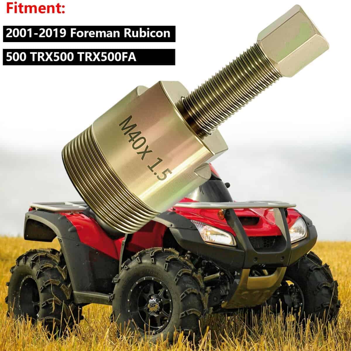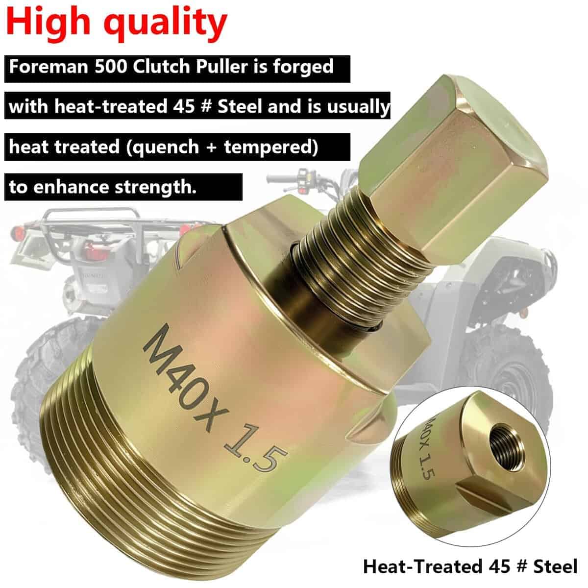 Extractor de embrague compatible con 2001-2019 Foreman Rubicon 500 TRX500 TRX500FA. Fabricado con acero 45 tratado térmicamente, recubierto con galvanizado de color, resistencia al torque fuerte, no se deforma ni se rompe fácilmente, puede manejar fácilmente los pernos de embrague, tiene una larga vida útil.
