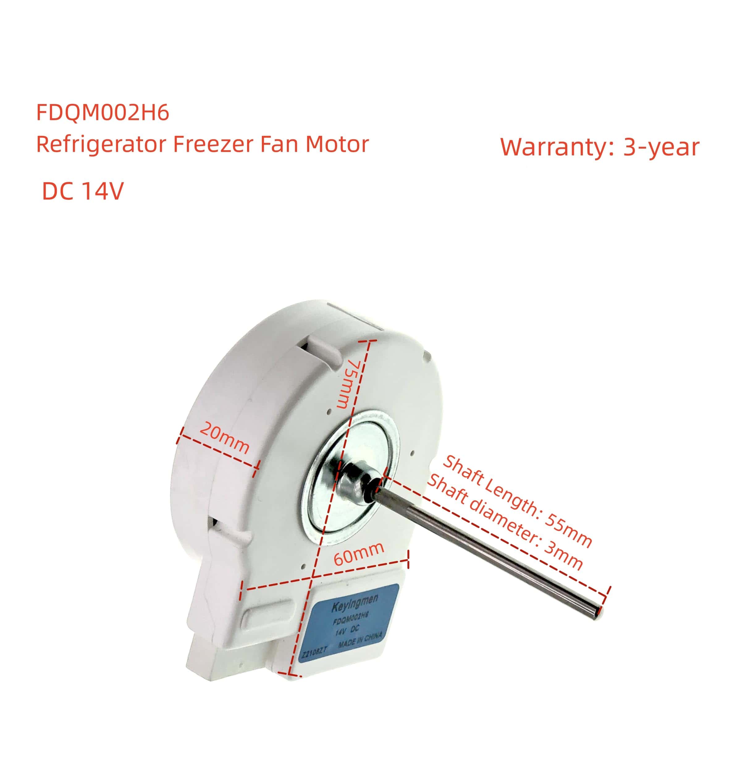 Modelo: FDQM002H6 El Motor del Ventilador del Congelador del Refrigerador es compatible con Refrigerador Samsung. Tiene especificaciones eléctricas de DC 14V, Longitud del Eje: 55mm, Diámetro del Eje: 3mm, Garantía: 3 años. Es el reemplazo perfecto para tu viejo ventilador, acelera la velocidad de enfriamiento, hace que el interior del refrigerador se enfríe de manera uniforme y hace que la capacidad de enfriamiento del refrigerador luzca como nueva. Caja hecha de plástico ABS de alta calidad, duradero. El circuito del motor está hecho de metal de alta calidad en su interior, con una larga vida útil y una gran confiabilidad. Fácil de instalar, simplemente instálalo directamente. Puedes encontrar fácilmente el método de instalación buscando en el sitio de videos en línea por el número de pieza. Paquete incluye: 1 pieza Nueva Motor del Ventilador del Congelador del Refrigerador. Por favor verifica la imagen de confirmación y el número de parte antes de comprar. Nuestros productos son nuevos, nuestro Motor del Ventilador tiene servicio de devolución e reembolso ilimitado en 180 días. Si tienes alguna pregunta después de recibir el paquete, no dudes en contactarnos, te contestaremos dentro de 24 horas en días laborables.