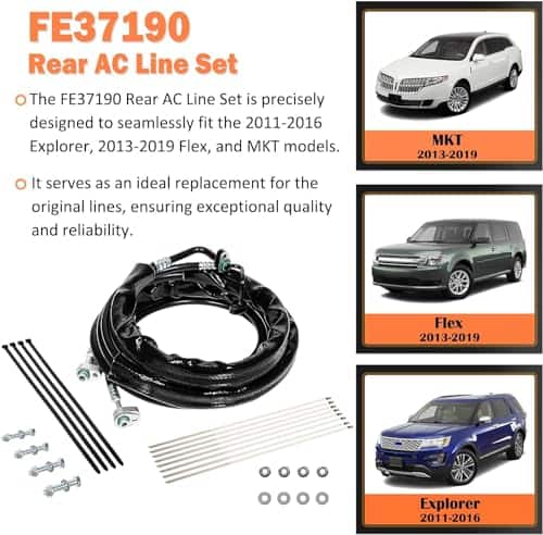 Reemplaza los números de parte: BB5219835B, BB5219867B, DB5219835B, DB5219867B, YF3694, YF37131, YF3693, YF37194, YF37193. Ajuste: Ford Explorer 2011 – 2016, Ford Flex y MKT 2013-2019. Nuestro kit de línea de aire acondicionado trasera te permite reemplazar las líneas de aire acondicionado traseras y restaurar el uso del sistema de aire acondicionado trasero a una fracción del precio de las sustituciones rígidas de fábrica. Fácil de instalar: manguera de aislamiento de CA flexible, instalación y reemplazo directo, completamente ensamblado y probado a presión. Los kits incluyen las líneas traseras de alta y baja presión (de succión y descarga), sellos de anillo en O, kit de atadura de línea de aire acondicionado para montar las nuevas líneas.
