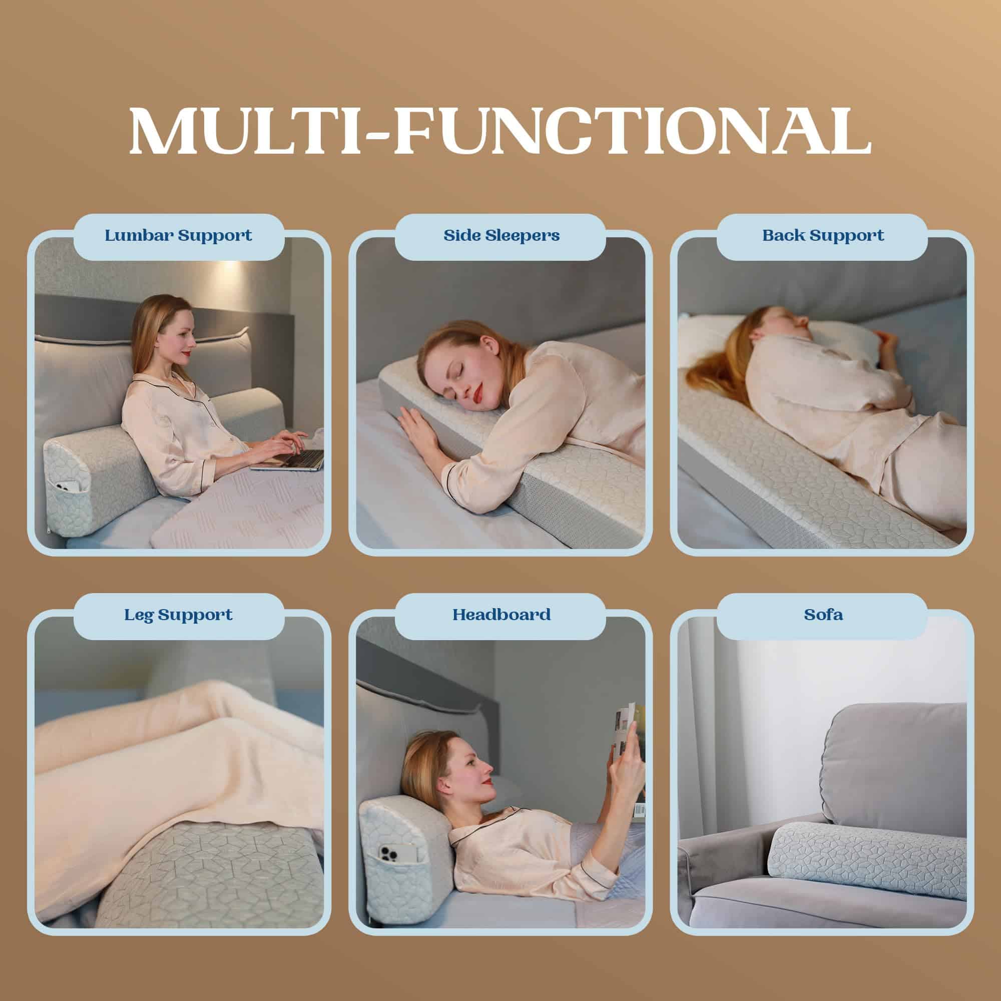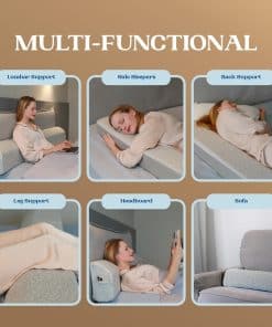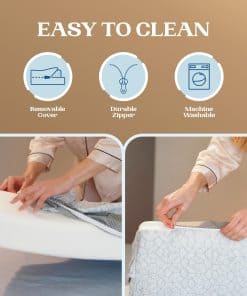 El relleno de cabecera cuenta con una funda lavable extraíble hecha de materiales transpirables y una base antideslizante que garantiza la máxima comodidad. La espuma de alta densidad proporciona un soporte óptimo y mantiene su forma original incluso después de un uso continuo. Para un rendimiento óptimo, se recomienda dejar la cuña de espuma en una superficie plana durante 24-48 horas para que se expanda por completo.
