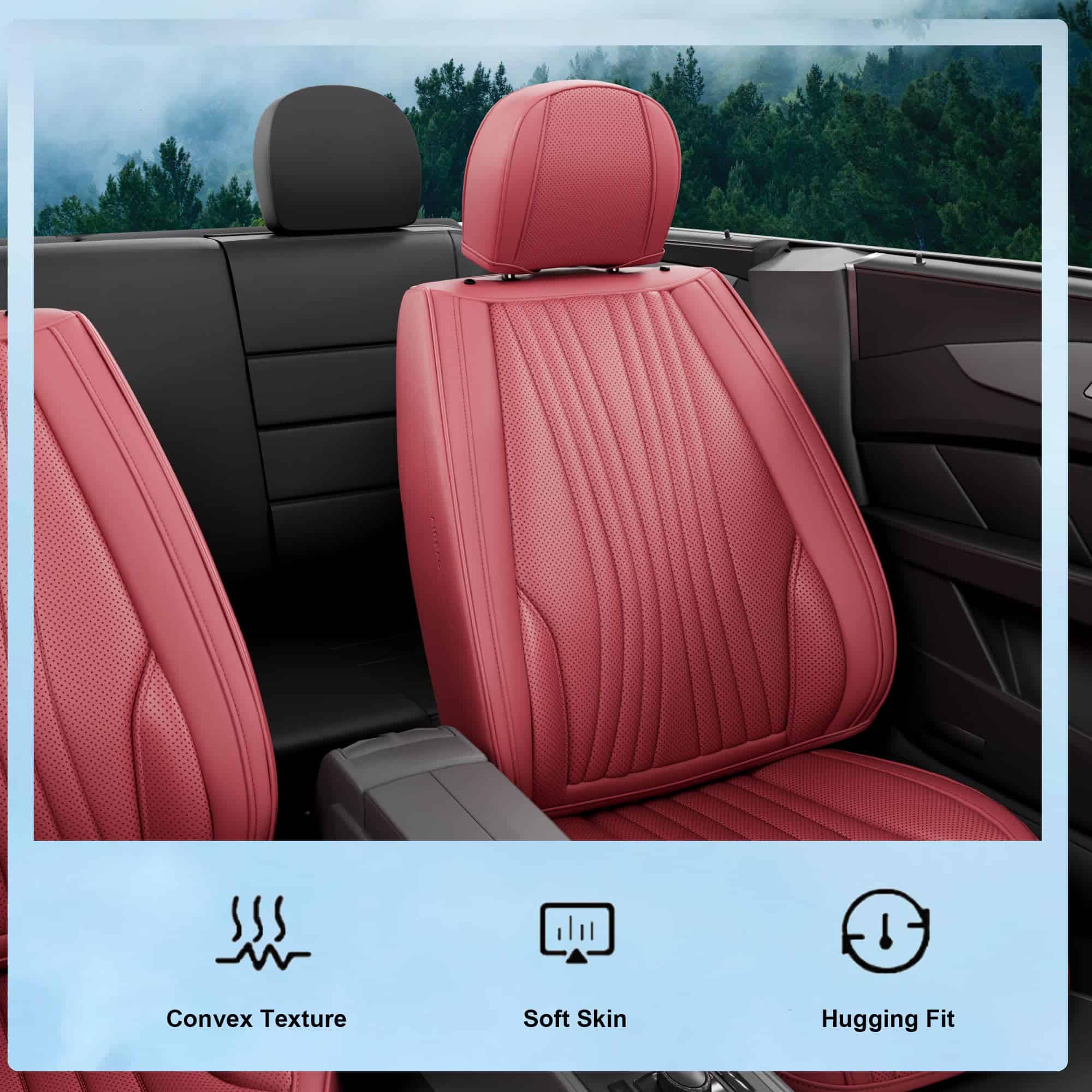 1. Super Suave y lujoso: Con cuero NAPPA de alta calidad, las fundas son suaves de verdad, se sienten de lujo y semi-flexibles vienen con soporte para el cuello, bastante cómodas y limpias; apenas podrían clasificarse como fundas, más parecen asientos de coche físicos que cubren tus propios asientos como base.