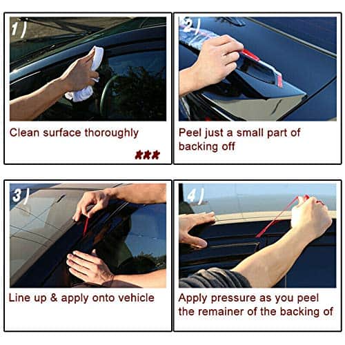 Viene con cintas adhesivas de doble cara de grado automotriz 3M. Instalación fácil.