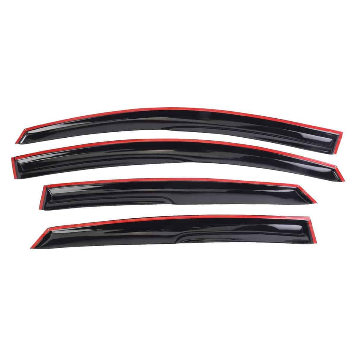 CARACTERÍSTICAS: 100% Nuevo stock. Material duradero diseñado para resistir los rigores de los elementos. Deflectores de viento, lluvia y nieve protegidos que ayudan a reducir el ruido del viento y el calor acumulado en los vehículos estacionados. Diseño tipo cinta directa, no requiere corte ni perforación. Viene con cinta adhesiva de doble cara de grado automotriz, instalación fácil. Mejora drásticamente el estilo y la apariencia.