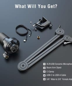 5. Reducción Adicional de Ruido: El parabrisas y el soporte antichoque en el micrófono XLR suprimen eficazmente el ruido duro causado por sonidos explosivos y vibraciones de baja frecuencia, manteniendo aún más limpias y naturales sus grabaciones de estudio de podcast y YouTube. El brazo articulado resistente mantiene una distancia entre el micrófono dinámico para podcast y el escritorio para evitar que el ruido entre en el micrófono USB para PC, haciendo que su voz sea más clara y suave durante podcasts o streaming.