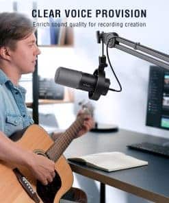 2. Calidad de Sonido Natural: La durabilidad y adaptabilidad del micrófono de podcast XLR con brazo articulado mantienen el sonido en estado natural sin distorsiones. Con un nivel de SPL de 130dB, el micrófono vocal USB hace que sus podcasts y grabaciones sean originales y estables. La cápsula dinámica con patrón cardioide reduce ruidos de ambos lados. Su audio no se verá abrumado por ruidos molestos de discos duros o ventiladores de computadora.