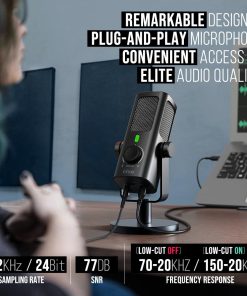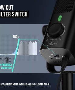 El micrófono de podcast USB FIFINE te permite enfocarte en tu voz con una tasa de muestreo opcional de hasta 192 kHz, lo que resalta cada detalle. El micrófono de computadora para PC con una relación S/N de 77 dB hace que el ruido de fondo en tu estudio sea insignificante para aumentar tu confianza en el trabajo de grabación. Este micrófono de grabación USB destaca por su filtro de corte de bajos que reduce ruidos molestos de baja frecuencia, como el zumbido de un ventilador o un aire acondicionado. Además, el control de volumen de mezcla de monitor te permite ajustar la relación de volumen de monitoreo del micrófono de estudio y la PC. La carcasa de metal robusta del micrófono USB C reduce el ruido no deseado resultante de la interferencia electromagnética para una calidad de audio más nítida. Este micrófono no solo está diseñado para facilitar su uso, sino que también garantiza durabilidad y estabilidad durante las grabaciones.