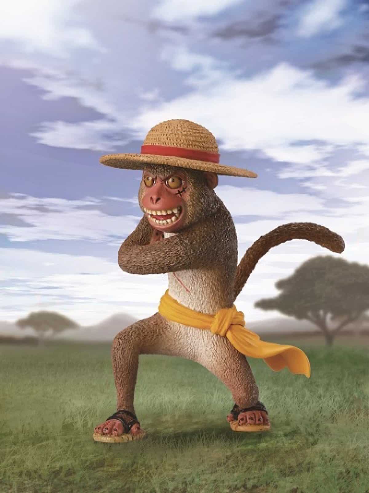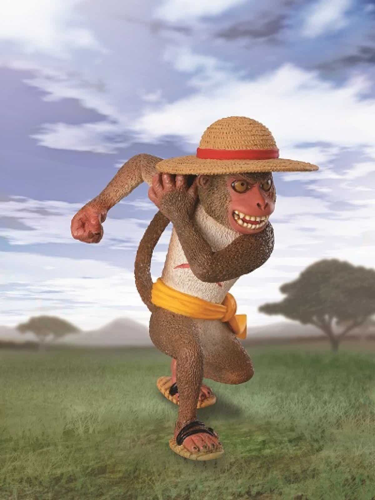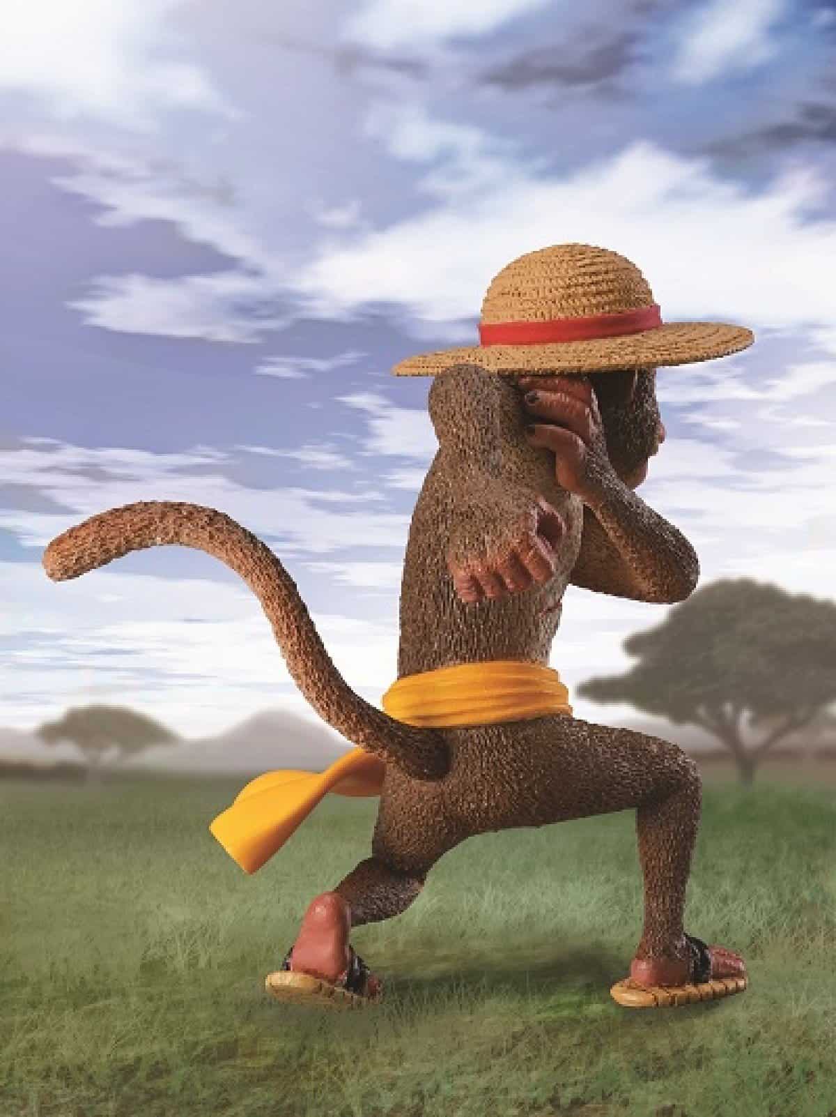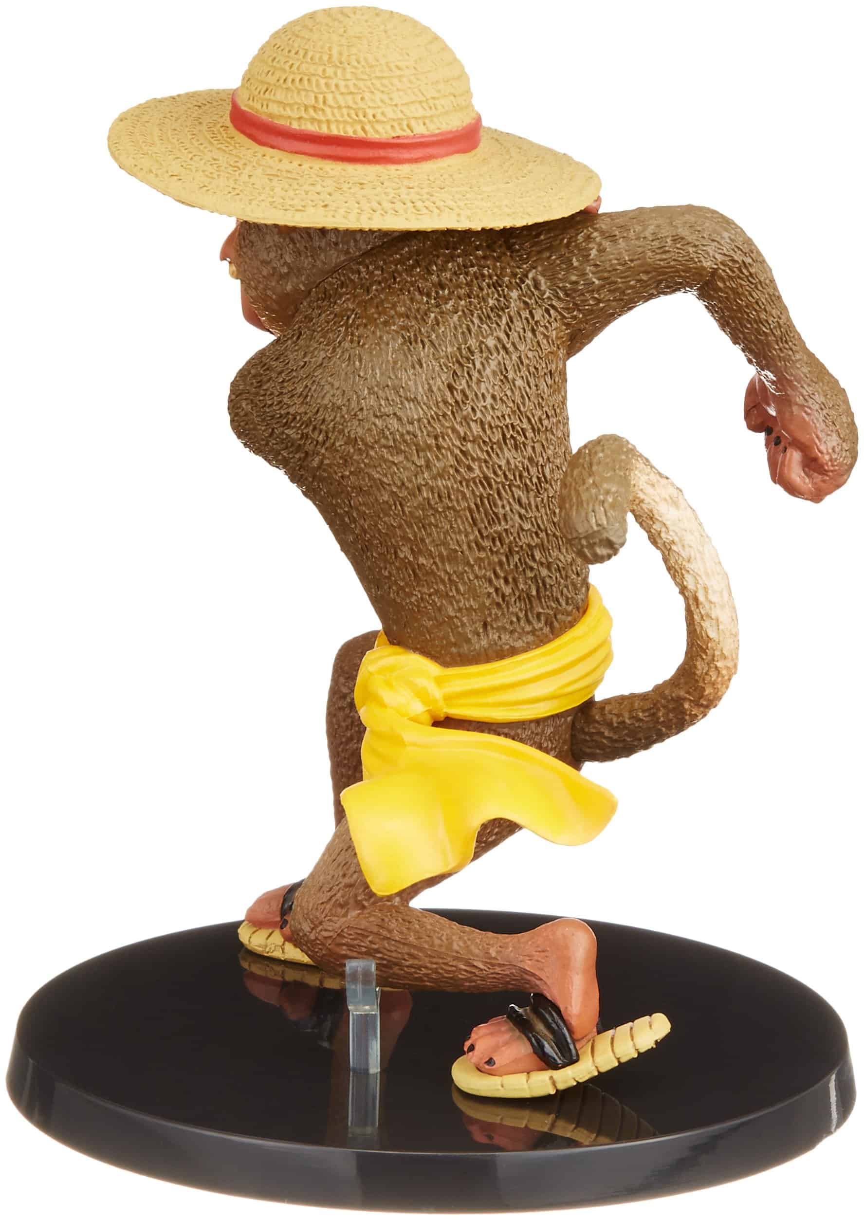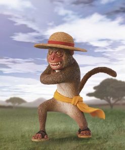 Figura de colección que representa a Monkey D. Luffy como un mono, diseñada por Asakuma Toshio y basada en el personaje creado por Eiichiro Oda. La figura viene con un soporte de accesorios para exhibirla.