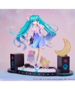 La ilustración clave para el evento de club de la cantante virtual Hatsune Miku «Digital Stars 2021» dibujada por el popular ilustrador Tsunako, ahora es una figura a escala 1/7. Diseñada por Tsunako, la linda compositora de música digital Miku está esculpida con gran detalle. Su twintail elegantemente ondulante y su apariencia inocente son fantásticos. La ilustración se ha recreado fielmente con especificaciones de lujo que incluyen un soporte inspirado en teclados MIDI y altavoces. ¡Asegúrate de añadirla a tu colección!