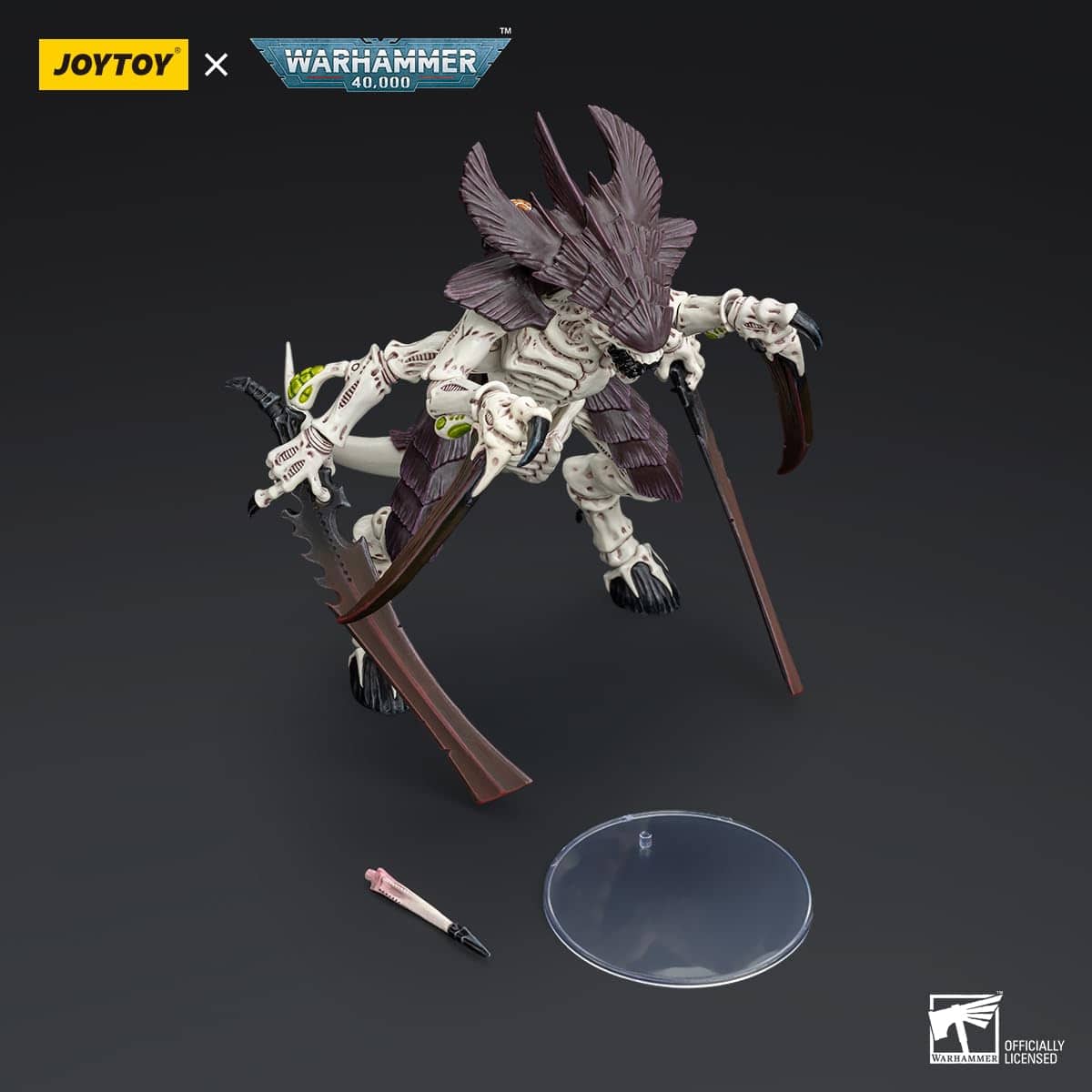 De JoyToy (Beijing) Tech Devco. La figura JoyToy WH40K Tyranids Hive Fleet Leviathan Tyranid Warrior with Boneswords 2 es una figura intricadamente diseñada que captura la naturaleza temible y alienígena de la especie Tyranid. Equipado con dobles Boneswords, este Tyranid Warrior está listo para cortar a través de enemigos con una eficiencia despiadada. Perfecto para agregar una presencia amenazante a tu colección de Warhammer 40K, esta figura muestra el poder aterrador de Hive Fleet Leviathan.