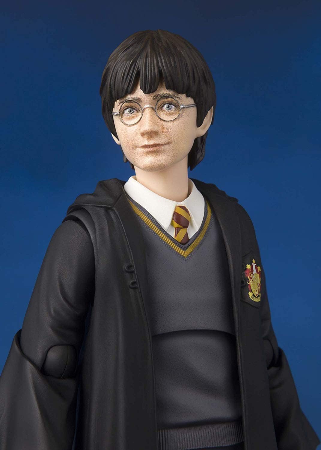 Harry Potter se une a la serie S.H.Figuarts como una figura de acción elaboradamente esculpida, digitalmente coloreada y altamente posable, ¡incluso el cuello puede ser poseído! Harry viene con una gran cantidad de accesorios, incluyendo su varita, su búho Hedwig y su escoba de carreras Nimbus 2000, lo que te permite recrear tus escenas favoritas de las películas. Hedwig viene con piezas opcionales que se pueden intercambiar para una pose de alas abiertas, y Harry tiene piernas opcionales que se pueden intercambiar para dejarlo montar su escoba. El set incluye dos partes de expresión facial opcionales, tres pares de manos opcionales, su varita mágica, un libro de texto, una túnica, el nimbus 2000 y Hedwig (con alas abiertas opcionales).