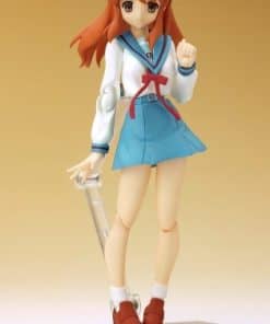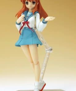 De Max Factory. ¡De «La Melancolía de Suzumiya Haruhi» llega la amable y despreocupada Mikuru Asahina en el uniforme de la North High School, como una figma! Las nuevas piezas de articulación permiten un aspecto suave pero movimientos posables, lo que te permite posar muchas escenas diferentes. Se utiliza plástico flexible para el uniforme y la falda, lo que permite mantener las proporciones sin comprometer la posabilidad. Centrándose en sus senos y sus caderas, las proporciones perfectas de Mikuru fueron recalculadas. La diferencia en las alturas de los miembros de la Brigada SOS también fue recalculada. Puedes cambiar la cara de Mikuru a su cara asustada y llorosa, lo que te permite disfrutar de la expresión facial que deseas que tenga. Viene con un stand figma posable, que hace posible recrear varias escenas.