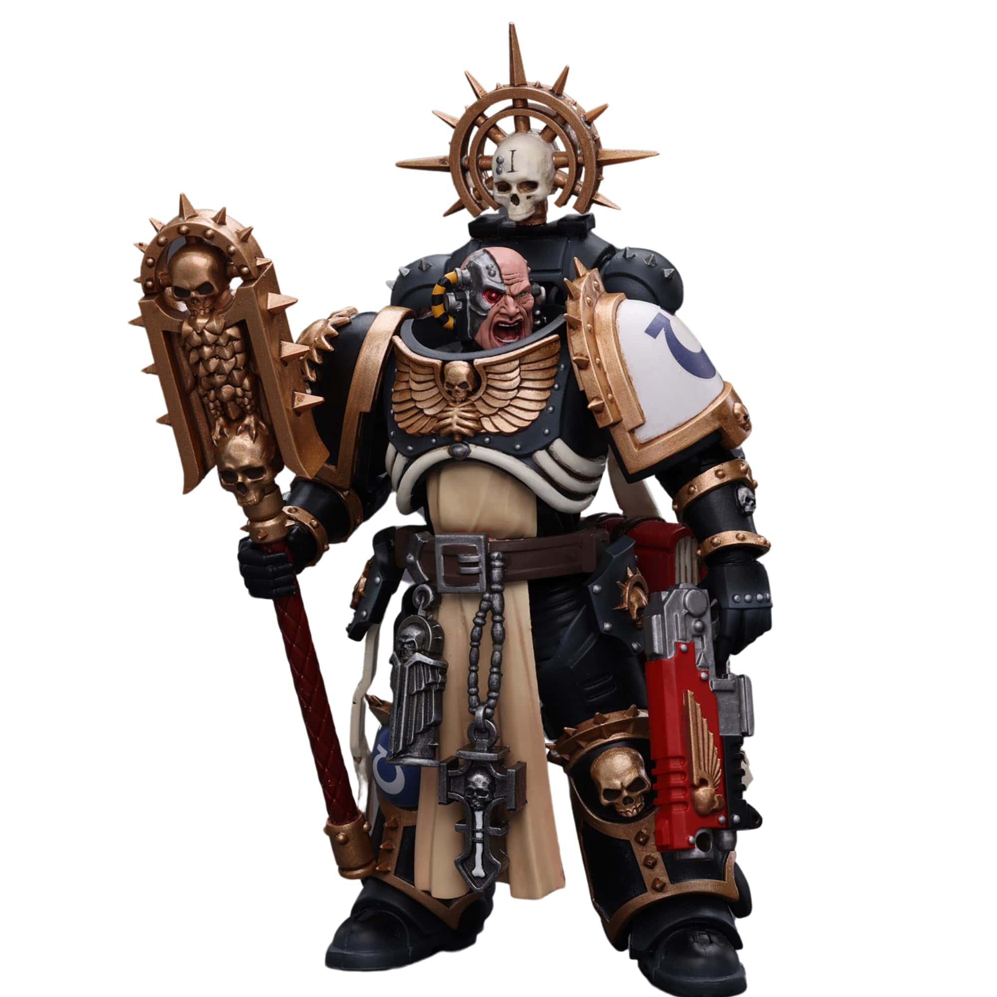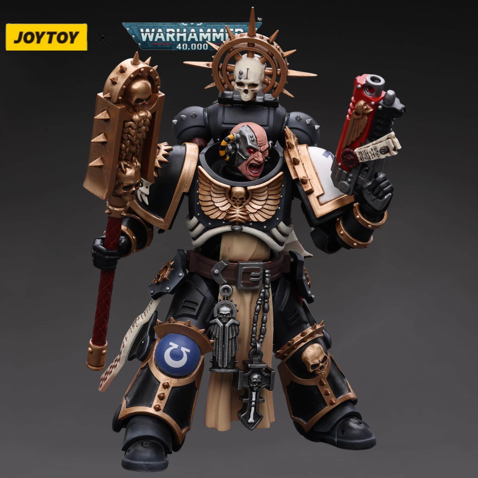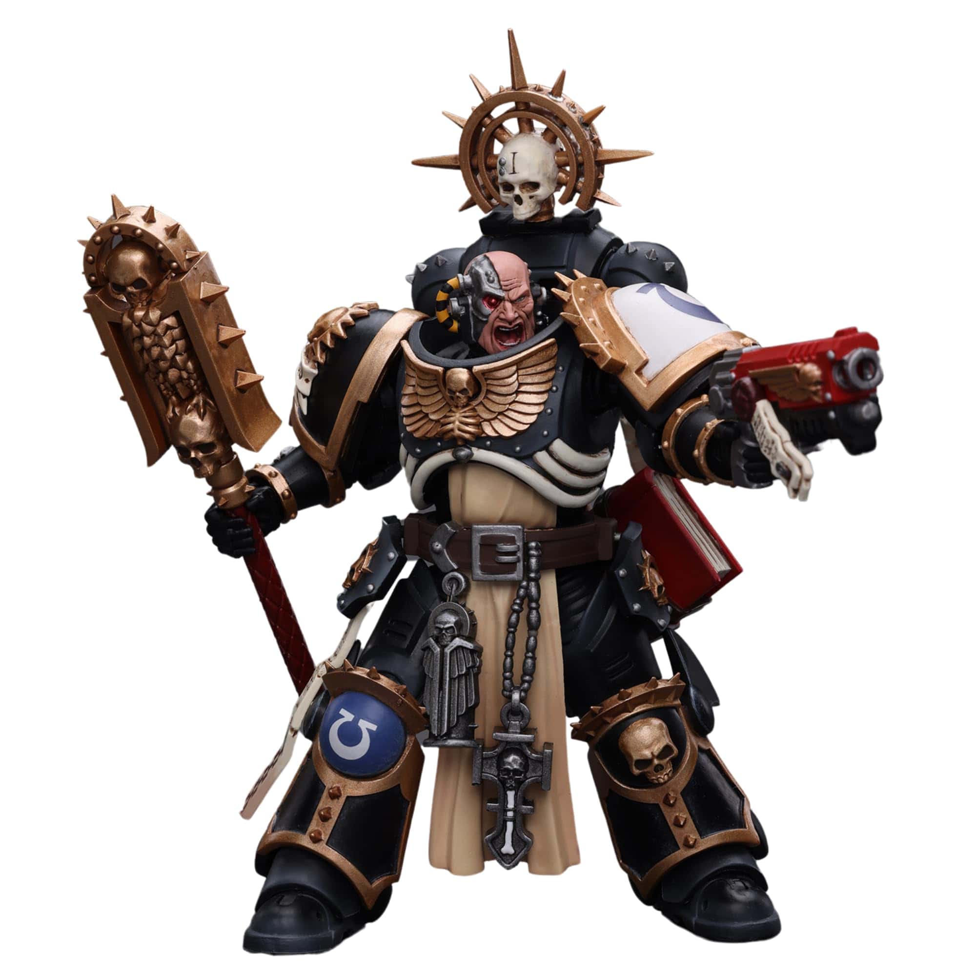 De JoyToy (Bejing) Tech Devco. ¡Te presentamos la Figura de Acción JoyToy Warhammer 40K Ultramarines Chaplain (Indomitus)! Con esta figura coleccionable exquisitamente elaborada, que presenta el reconocible Ultramarines Chaplain (Indomitus), puedes sumergirte por completo en las batallas históricas del universo de Warhammer 40K. Esta figura de acción, creada meticulosamente con atención al detalle, captura la intensa lealtad y espíritu inquebrantable de los Ultramarines, convirtiéndola en un artículo imprescindible para coleccionistas y entusiastas acérrimos de Warhammer 40K. Incluye Power Pack, Crozius Arcanum, pistola, un par de manos y una base como accesorios.