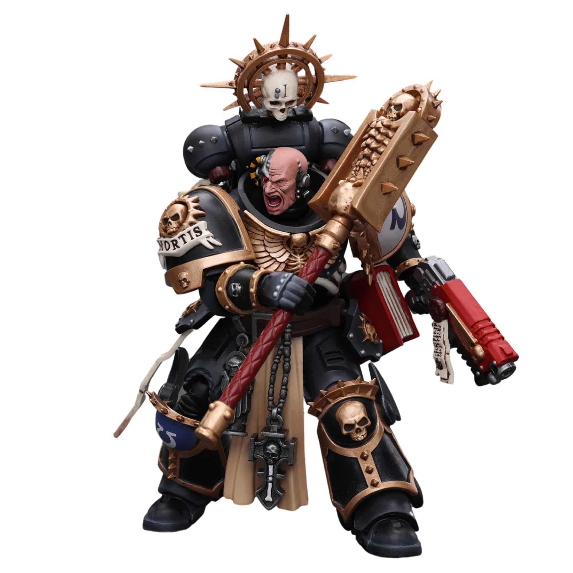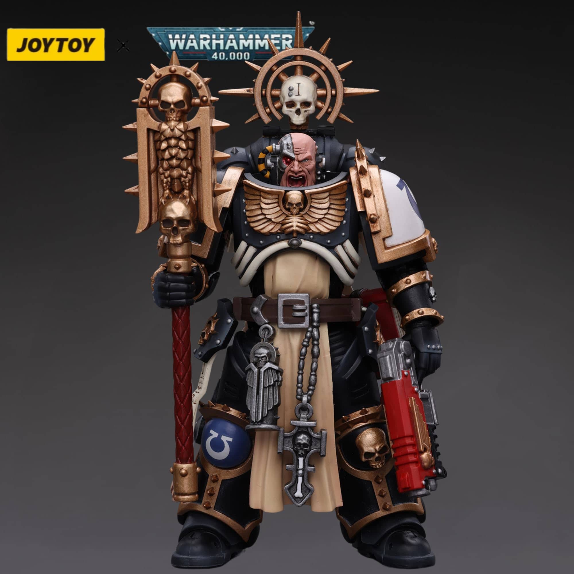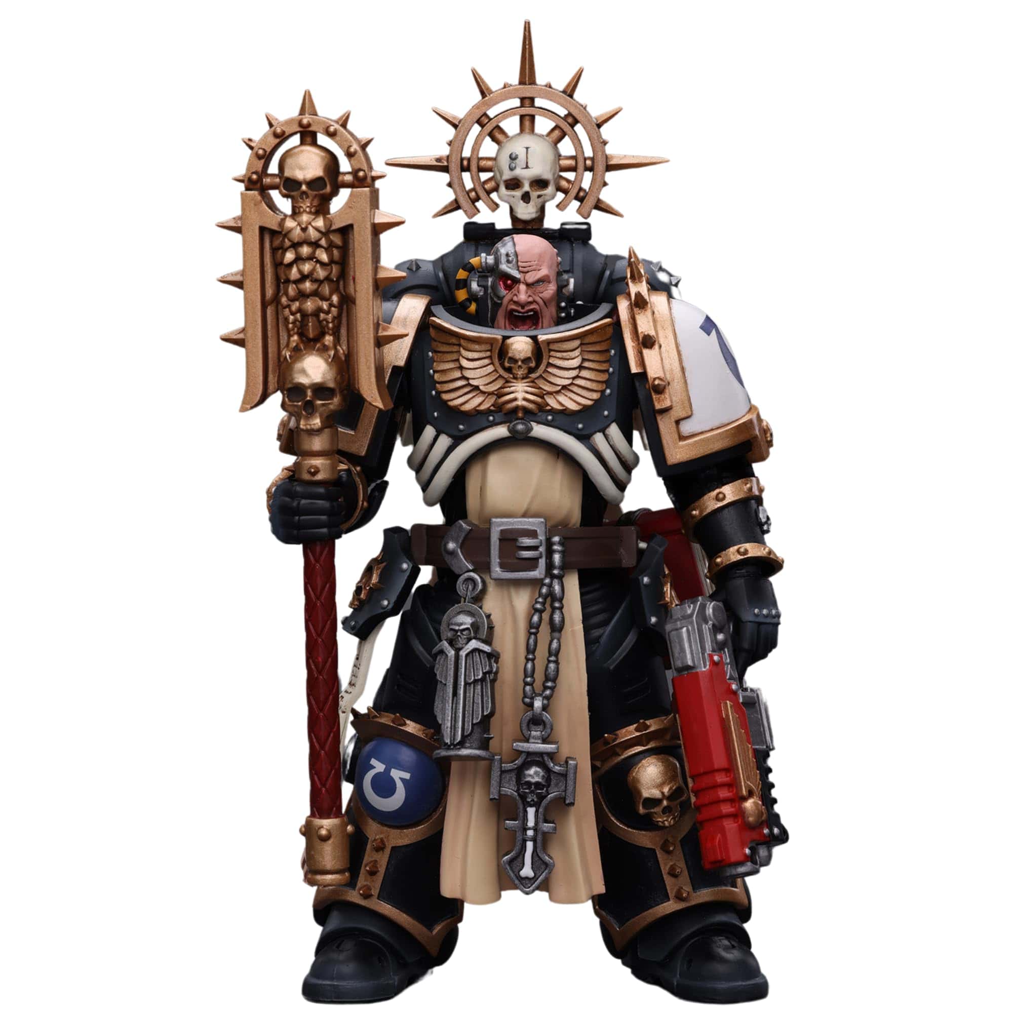 De JoyToy (Bejing) Tech Devco. ¡Te presentamos la Figura de Acción JoyToy Warhammer 40K Ultramarines Chaplain (Indomitus)! Con esta figura coleccionable exquisitamente elaborada, que presenta el reconocible Ultramarines Chaplain (Indomitus), puedes sumergirte por completo en las batallas históricas del universo de Warhammer 40K. Esta figura de acción, creada meticulosamente con atención al detalle, captura la intensa lealtad y espíritu inquebrantable de los Ultramarines, convirtiéndola en un artículo imprescindible para coleccionistas y entusiastas acérrimos de Warhammer 40K. Incluye Power Pack, Crozius Arcanum, pistola, un par de manos y una base como accesorios.