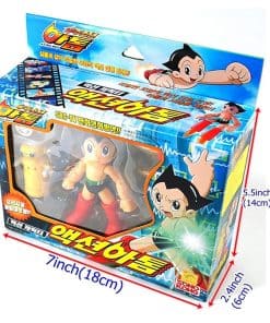 Esta lista es para el set de figuras de acción de Astro Boy(Atom) por Takara tomy. Este set de figuras fue lanzado en 2003 y está en una condición nueva sin abrir, este artículo es muy raro y difícil de encontrar incluso en Corea. Incluye: Figura de Astro Boy(Atom), figura de Robita, Cañón de brazo(arma), Botas, Soporte para figuras. La cubierta de la caja está escrita en idioma coreano.
