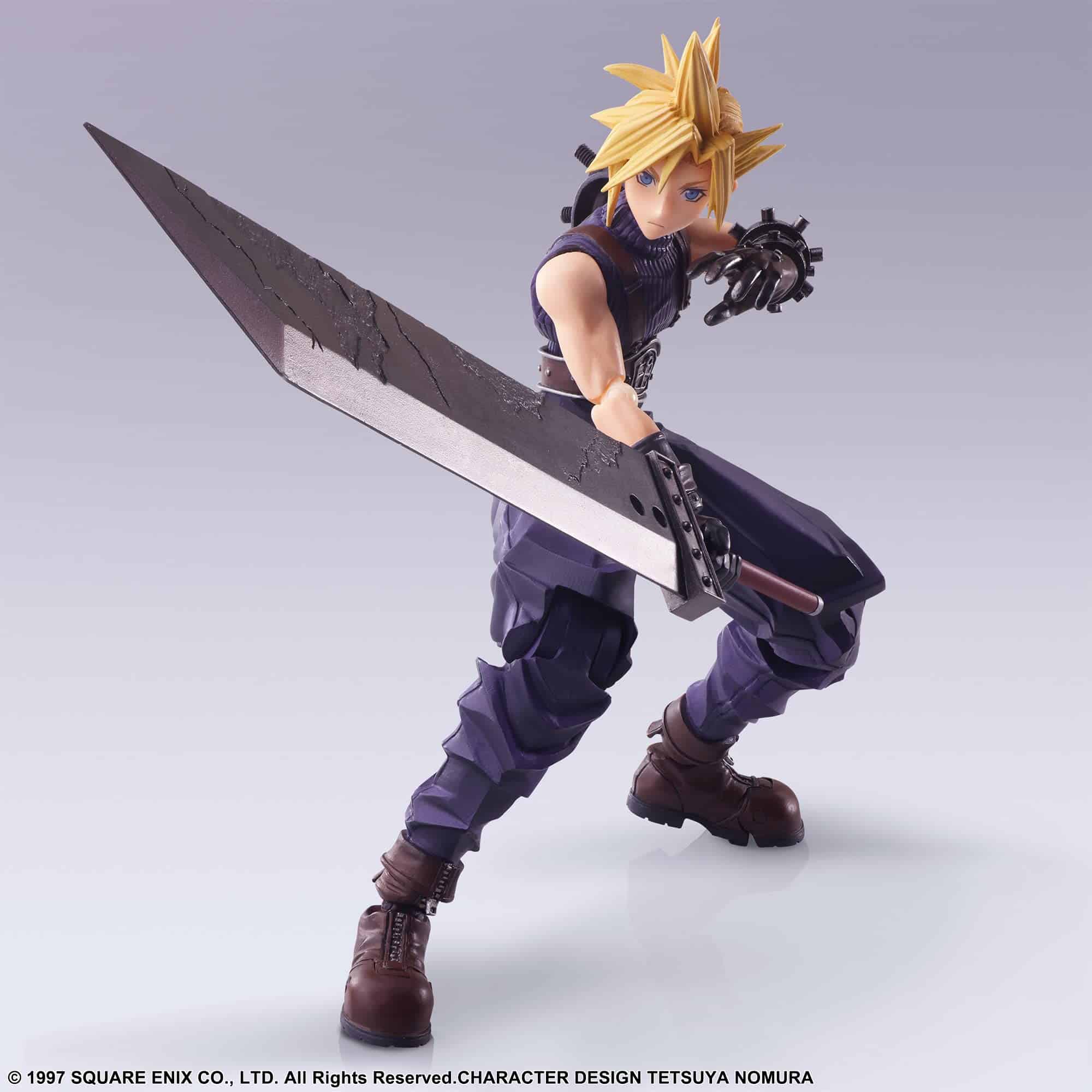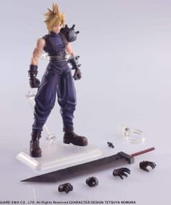 De Square Enix. Los diseños originales del amado clásico, Final Fantasy VII, ahora se unen a la serie de figuras de acción BRING ARTS, comenzando con el icónico protagonista del juego, Cloud Strife. El peinado característico de Cloud, la armadura del hombro y el uniforme de soldado se recrean fielmente en 3D para infundir una sensación de nostalgia por su apariencia en el título original. Desde la expresión facial de Cloud hasta las arrugas y texturas de su ropa, cada centímetro de esta figura ha sido detallado meticulosamente. La figura viene con una variedad de manos intercambiables y el emblemático arma de Cloud, la espada Buster, que se puede sostener en sus manos o llevar en su espalda.
