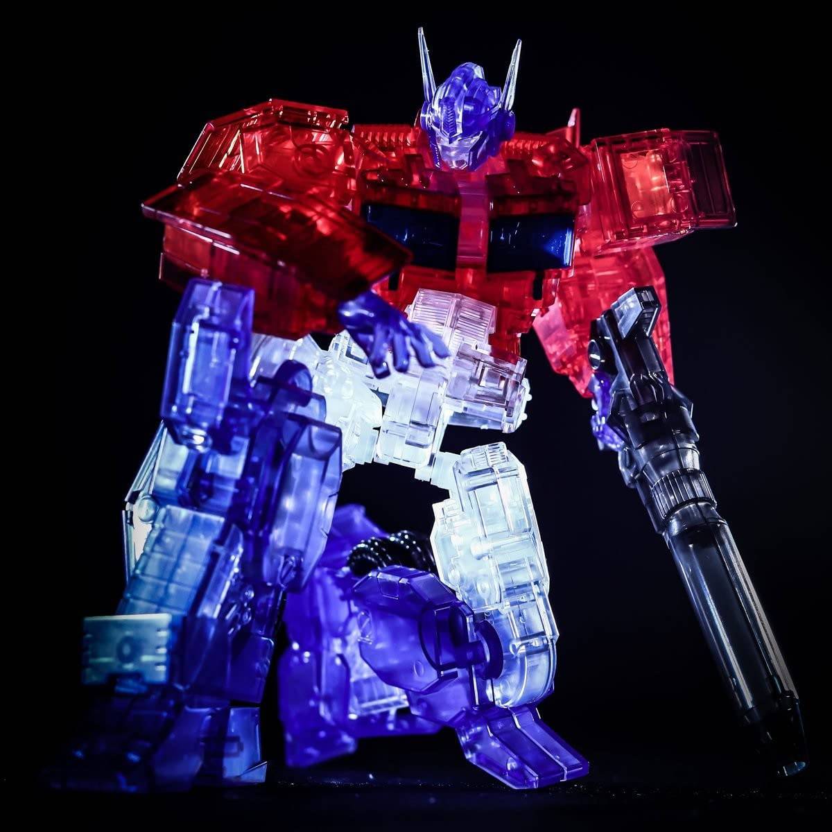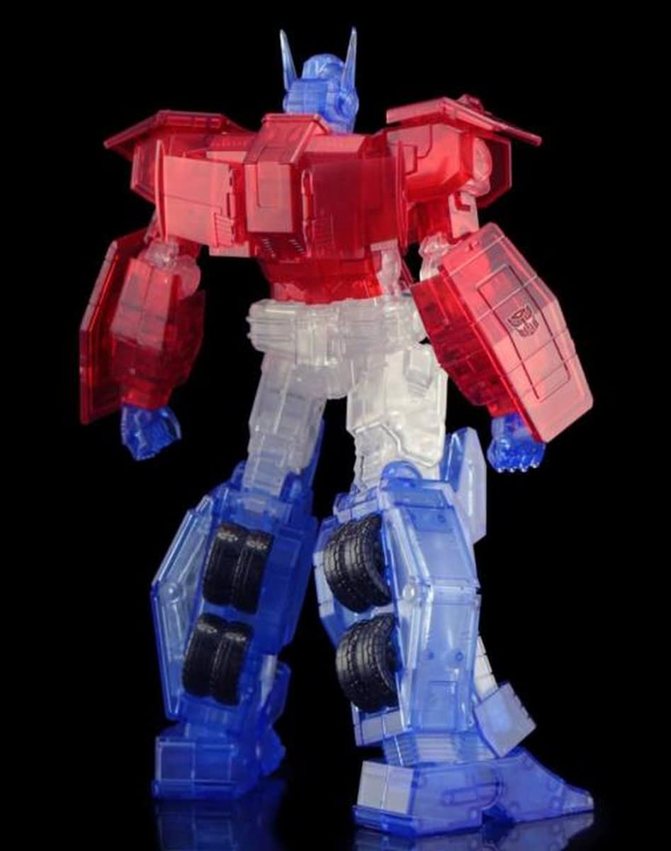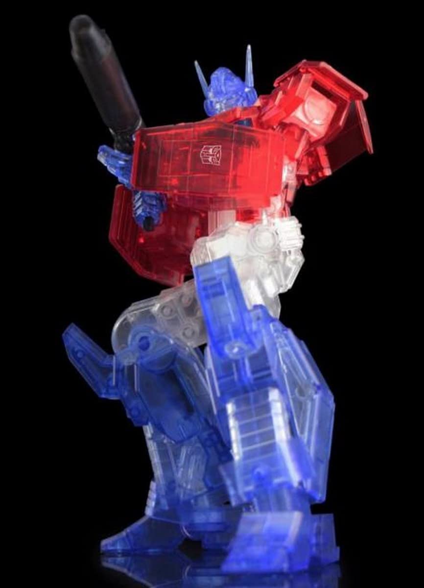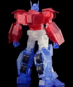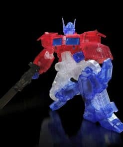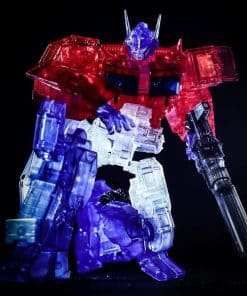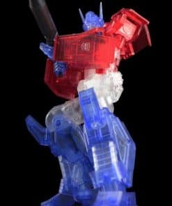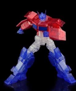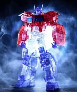 Introduciendo el Optimus Prime IDW exclusivo de Bluefin (versión transparente). Esta versión del Optimus IDW viene en plástico completamente transparente para crear un efecto genial de transparencia que es una primicia para los modelos de Flame Toys. El tamaño de la cabeza a los pies es de 155 mm. (6.1″). Otra primicia es una exclusiva caja de lata en la que viene embalado el modelo. El diseño de la caja de lata está modelado a partir de la Matriz de Liderazgo. Todo viene empaquetado en una manga de cartón con arte de Optimus Prime dibujado en plateado.