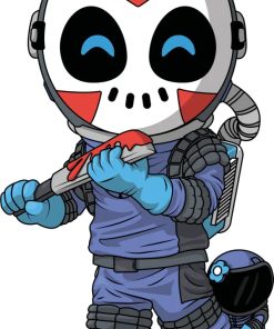 ¡Alta calidad y súper detallado! Con 4.7 pulgadas de altura, Susslirious debuta en un traje espacial azul oscuro con acentos azul bebé. Su identidad permanece oculta por su máscara roja y blanca característica, mientras que un lindo compañero en traje espacial se ve agarrando su talón. En sus manos sostiene un arma ensangrentada.