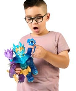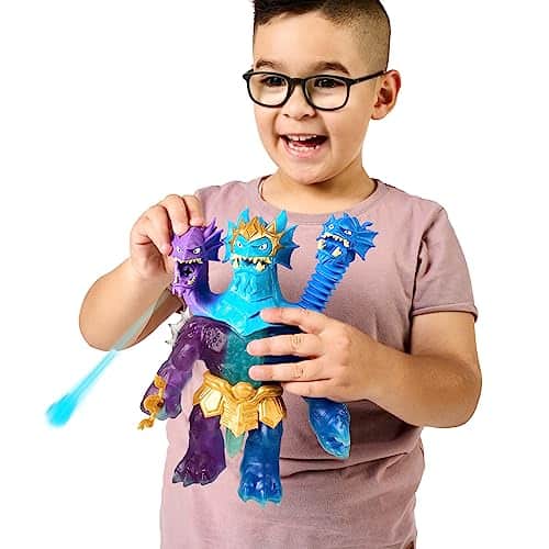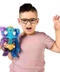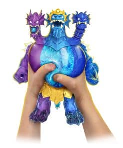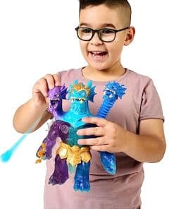 King Hydra es el gobernante del Deep Goo Sea y se yergue a una impresionante altura de 9.5″ (24cm)! Con Poder Goo 3 en 1, no hay otro héroe como él. ¡Los niños sentirán su poder en sus manos mientras estiran y exprimen sus tres diferentes rellenos de goo! ¡Los villanos del Deep Goo Sea temblarán al pensar en derrotar el «Triple Ataque» de King Hydra! Una cabeza lanza un «Ataque de Explosión» disparando un proyectil desde su boca. Otra cabeza se estira en su cuello extensible para alcanzar su objetivo. ¡Y su potente tercera cabeza entra en acción con luces y sonidos mientras usa sus mandíbulas en un «Ataque de Mordida»! ¡Con más de 35 sonidos, el cofre de King Hydra se ilumina mientras empuña su Tridente Dorado en el ataque de tres puntas definitivo! Al igual que otros Heroes of Goo Jit Zu, ¡King Hydra es súper elástico y puede estirarse hasta 3 veces su tamaño a una enorme de 32″ / 80cm! ¡Luego vuelve a su forma original para luchar una y otra vez! ¡Prepárate para la batalla definitiva del Deep Goo Sea con el héroe definitivo!