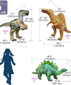 La colección de dinosaurios inflables de Jet Creations con Velociraptor, Estegosaurio, Espinosaurio hace un gran regalo. Estos nuevos diseños de dinosaurios inflables cuentan con impresiones a todo color y una estructura mejorada. Perfecto para niños y adultos y uno de los mejores regalos para fiestas. Se pueden utilizar como juguetes de piscina y son excelentes compañeros para una colchoneta o balsa. ¡Colecciona un salvaje reino de dinosaurios con otros dinosaurios de Jet Creations, como el T-Rex y el Braquiosaurio! Velociraptor: tamaño de 30 pulgadas de longitud y 51 pulgadas de altura, viene como una (1) pieza. Espinosaurio: 53 por 19 por 31 pulgadas de altura, tamaño medido inflado, viene como una (1) pieza. Estegosaurio: tamaño de 46 pulgadas de longitud y 20 pulgadas de altura, viene como una (1) pieza.