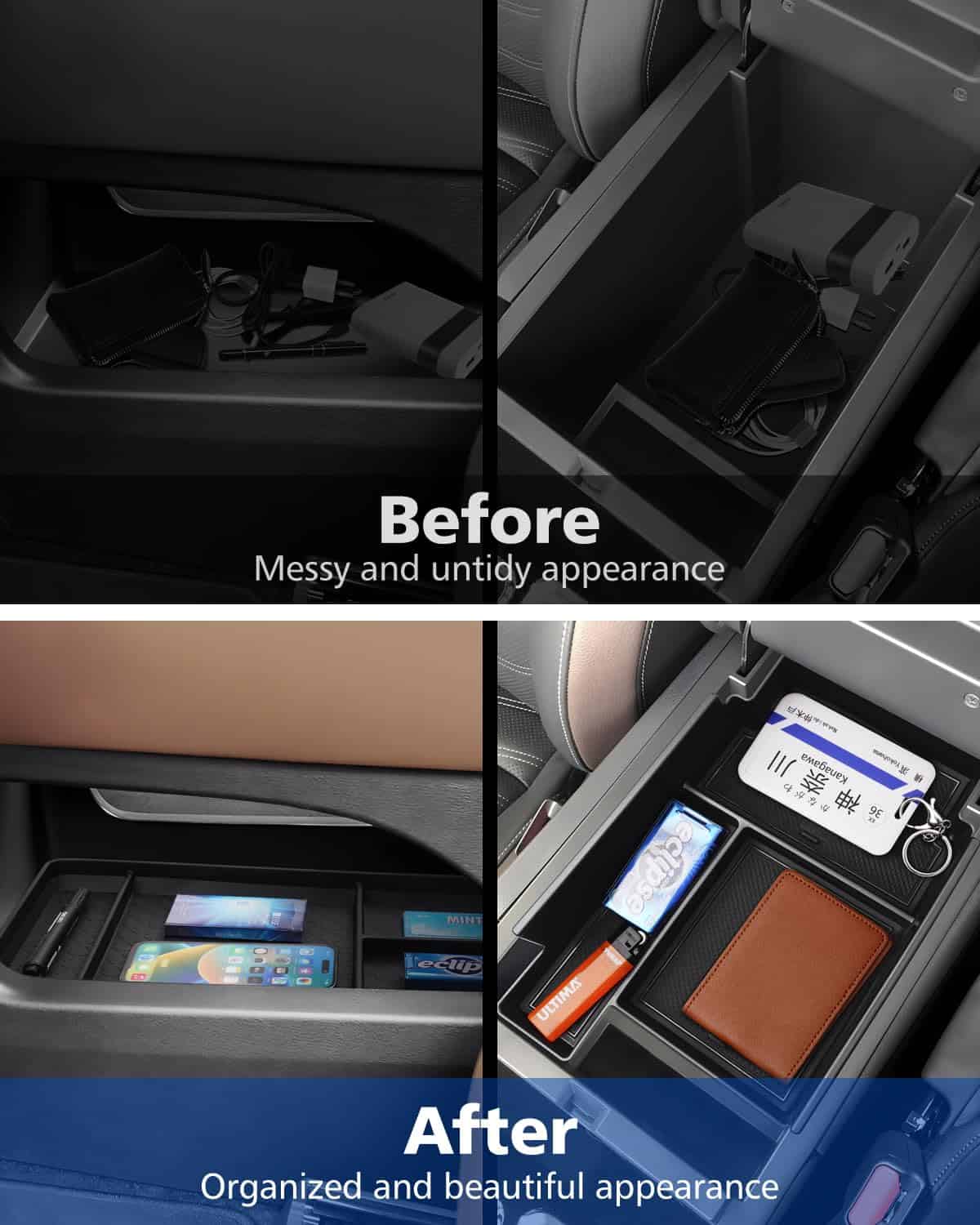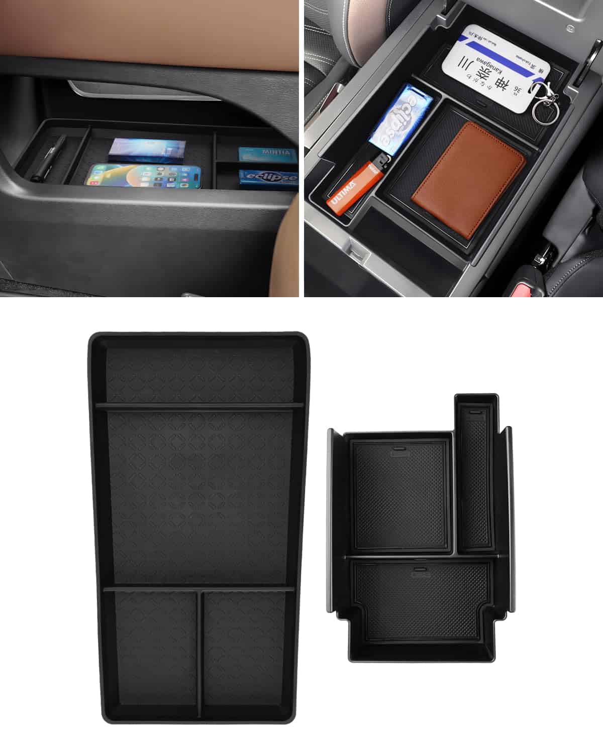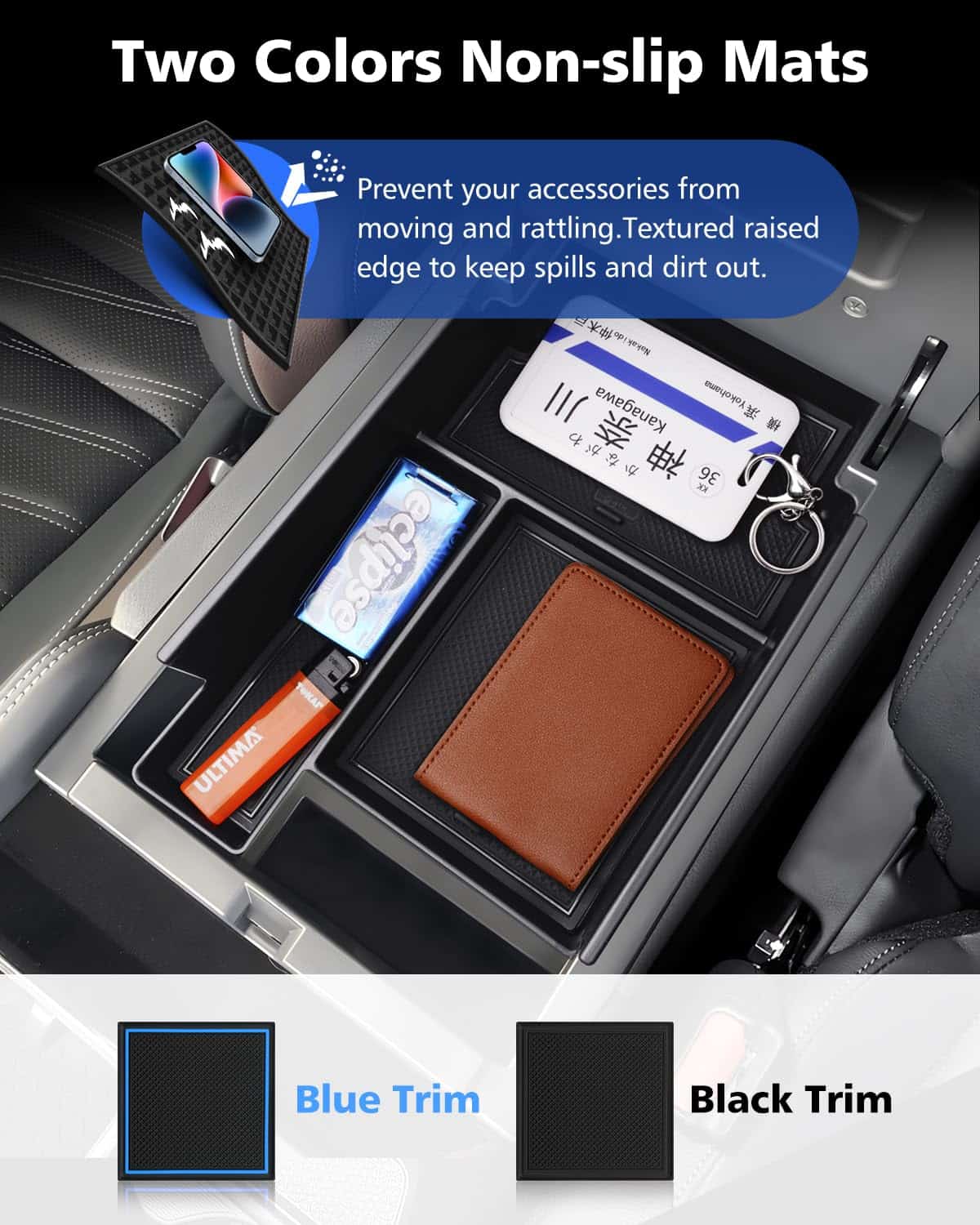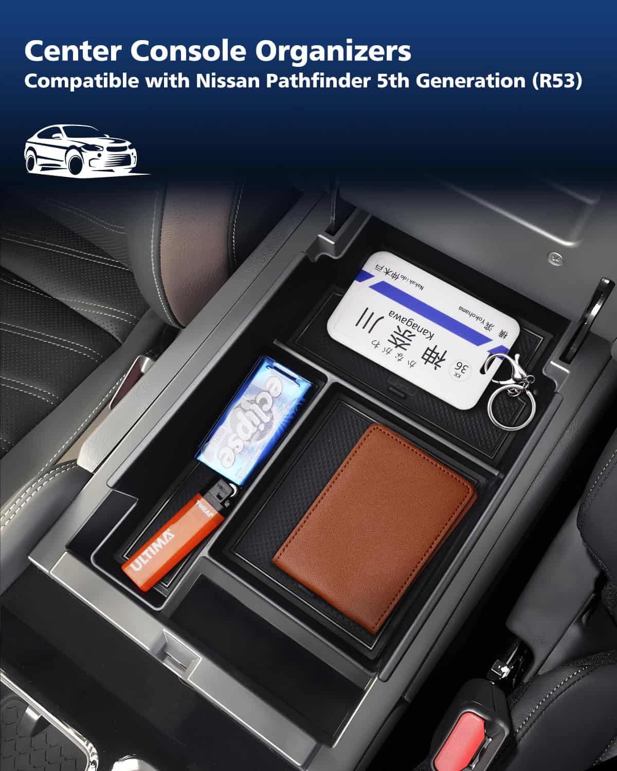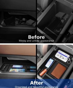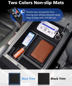 El organizador de la consola central FIILINES está diseñado específicamente para adaptarse al Nissan Pathfinder 2022-2025. Este accesorio de bandeja de consola apoyabrazos inferior le permite organizar mejor sus pertenencias en su vehículo. Crea compartimentos adicionales para satisfacer sus necesidades individuales y le permite encontrar fácilmente sus accesorios mientras conduce. La bandeja está fabricada con material ABS de alta calidad que es resistente y duradero, sin olores desagradables y seguro para su uso en el automóvil. Además, cuenta con tapetes antideslizantes negros y azules para mantener sus pertenencias en su lugar y reducir el ruido. La instalación es fácil y rápida, simplemente inserte el organizador en su lugar original y estará listo para su uso. Con el organizador de la consola central FIILINES, su Nissan Pathfinder estará más organizado y sus objetos personales estarán siempre al alcance de la mano.