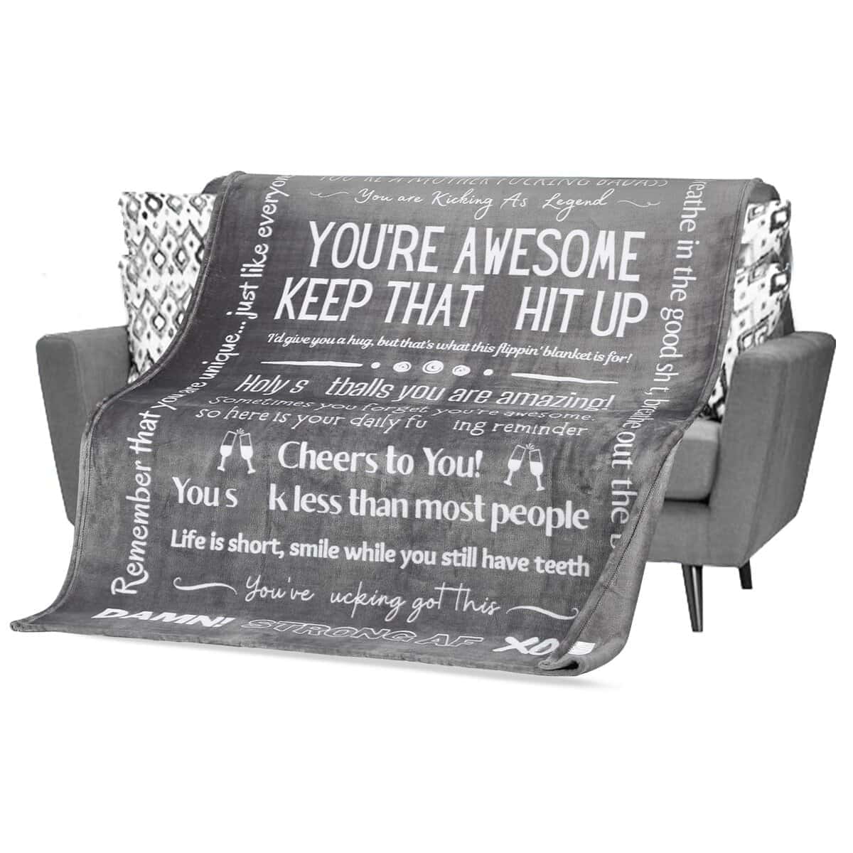 2. Lleno de Palabras Inspiradoras: Regalo Perfecto de Anímame o Alegra a alguien que necesita un poco de aprecio gracioso y motivador. Todas las palabras escondidas en las imágenes están impresas completamente en la manta real.