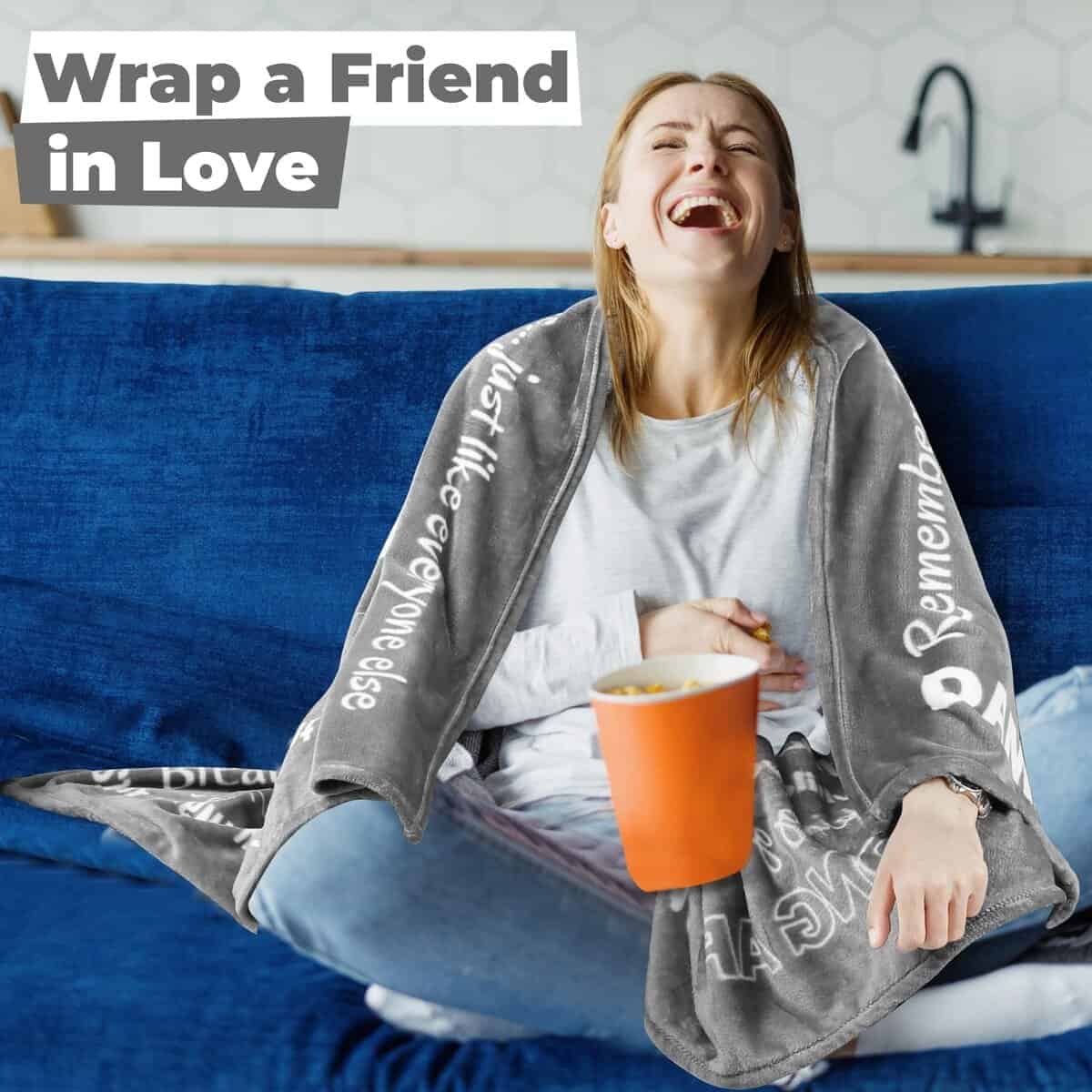 5. Suave y Fácil de Cuidar Regalo: Como darle a alguien una tarjeta divertida llena de citas hilarantes, pero en una manta súper suave que pueden usar todos los días del año y envolverse en tus pensamientos amorosos/divertidos.