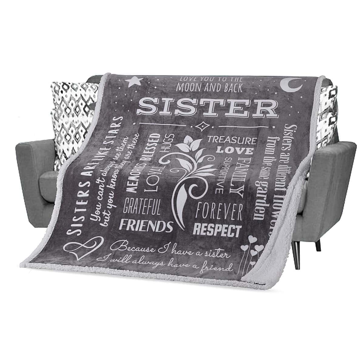 5. Para las muchas hermanas en nuestras vidas: Ya sea para una gemela, hermana mayor o menor, hermana pequeña o grande, hermanastra o cuñada, tus sentimientos y aprecio pueden sentirse todos los días, envueltos en un cálido abrazo de manta.