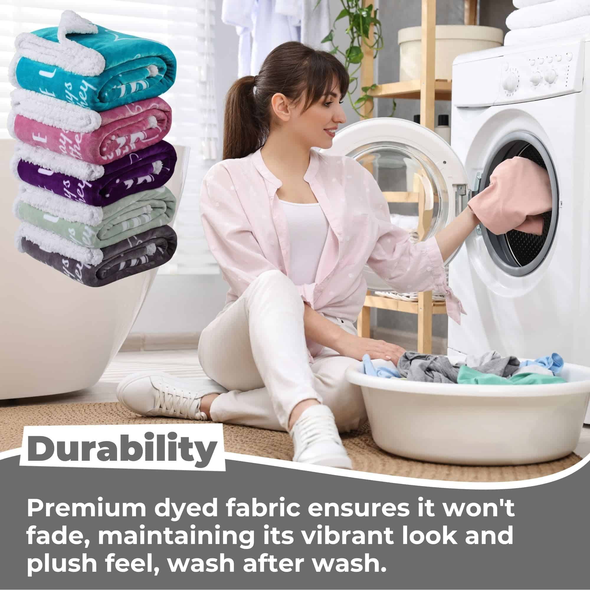 4. Un regalo de comodidad fácil de cuidar: Un regalo práctico y útil que tu hermana usará a diario. Fácil de lavar y secar a máquina, la manta premium no se encogerá, desvanecerá ni destiñirá y mantendrá su acogedor peluche, después de cada lavado.